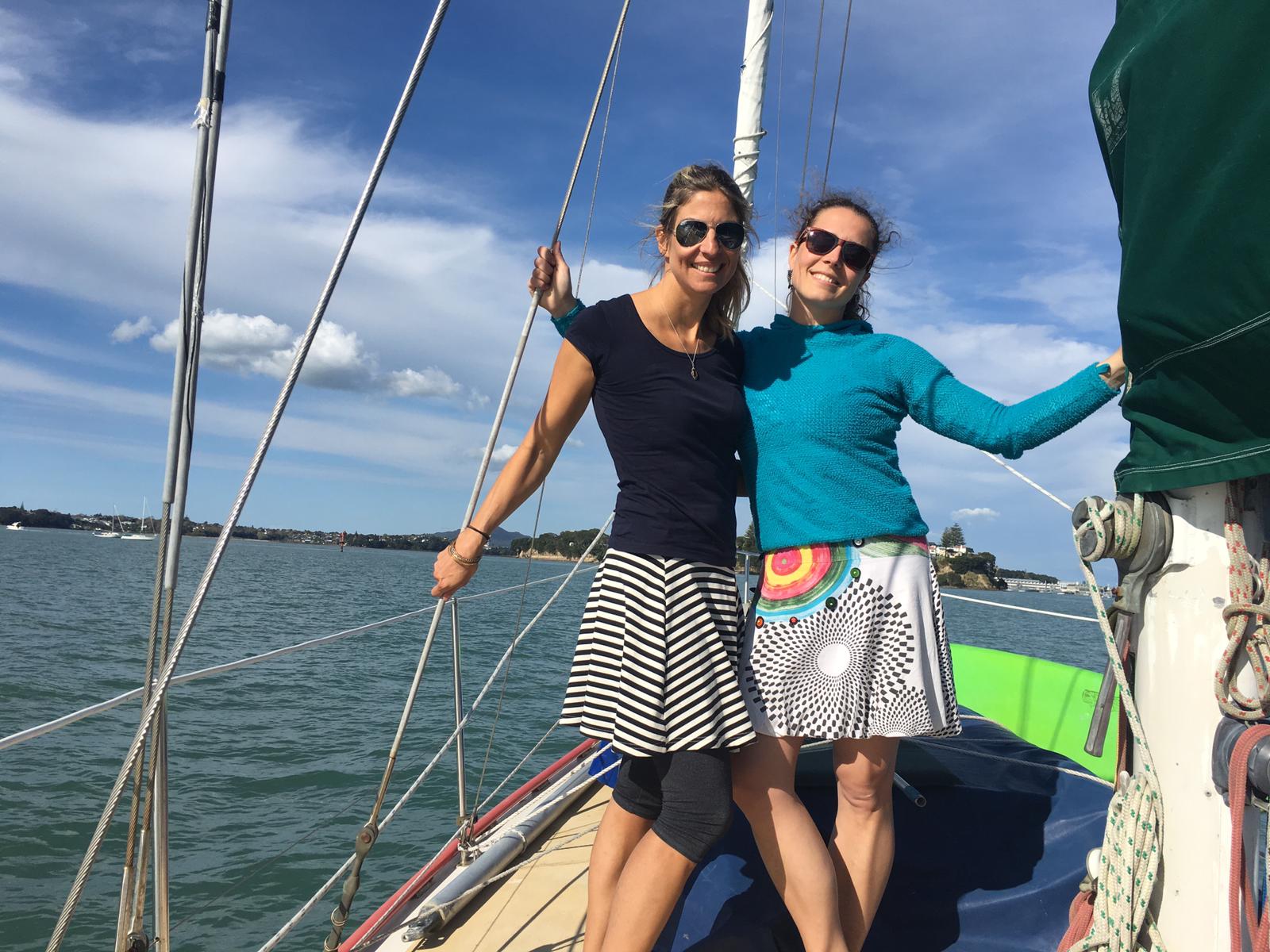 And while our morning guests departed, the celebration continued in the afternoon with the visit of Julia and her children Noah and Keziah. With them, we got out in the harbour for Obelix to stretch his sails and to throw the flower lays in the water to make our intentions known to the Universe.