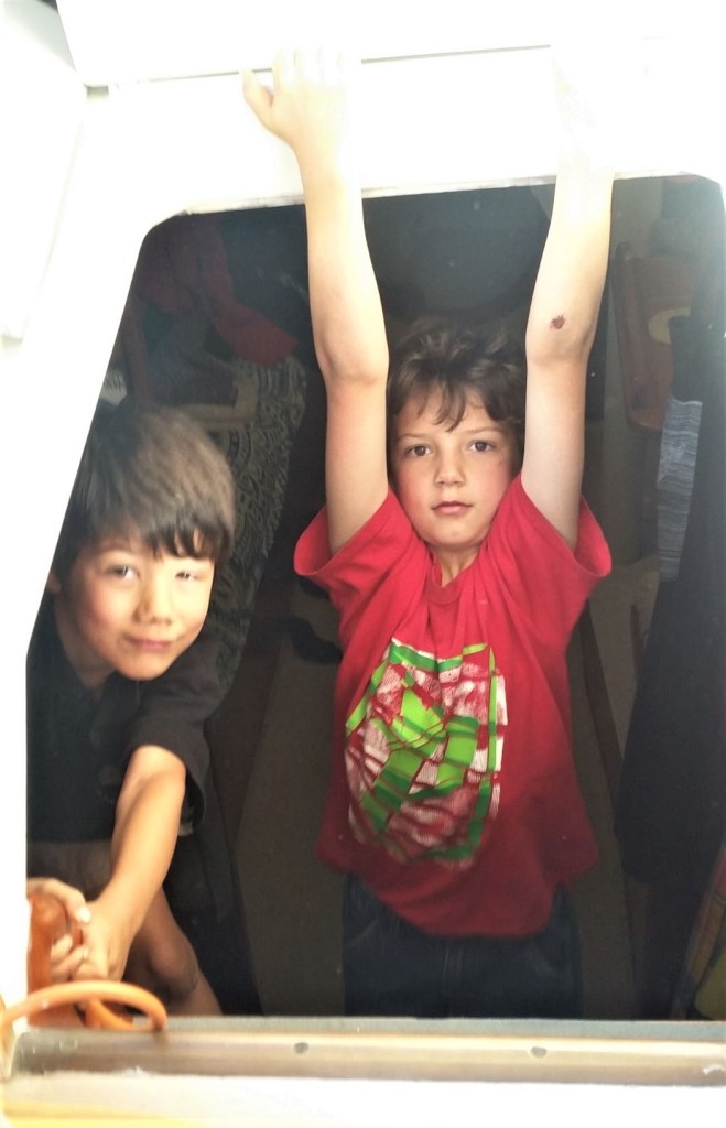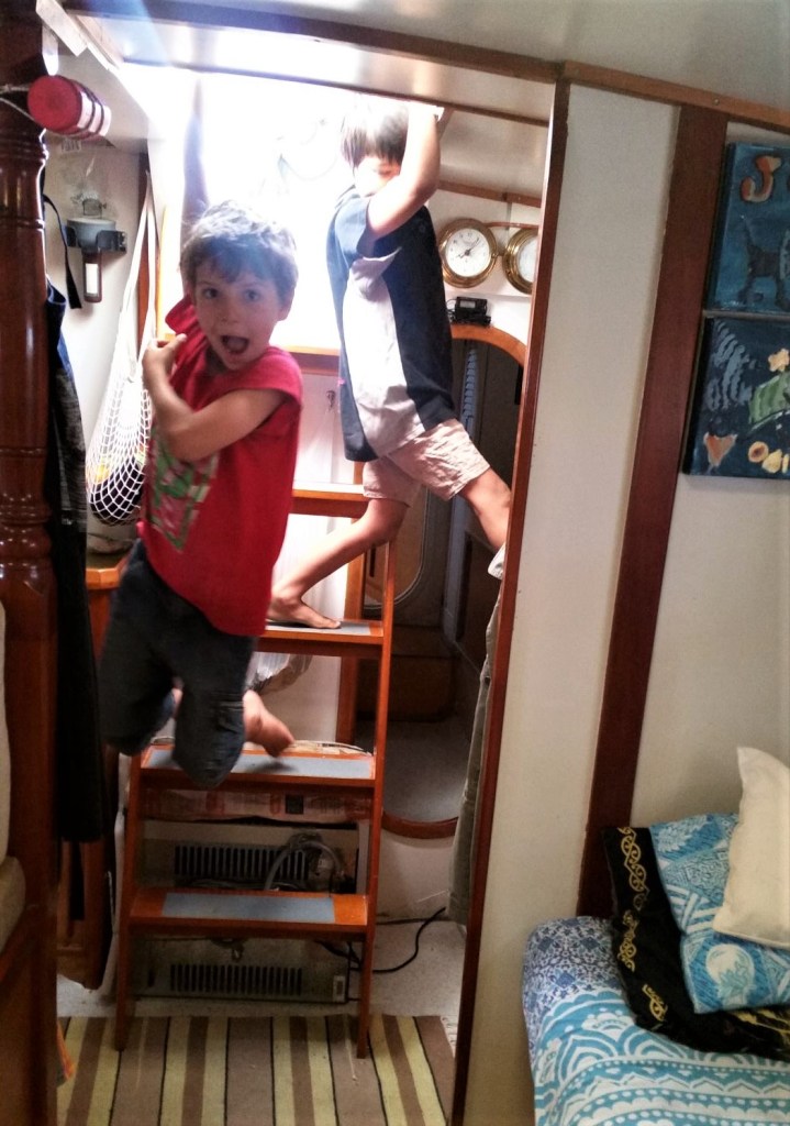 • We can be monkeys and we have a bigger play room, no a smaller one but we have a playroom – By being monkeys he means swinging around and going from one place in the boat to the other without touching the ground which they certainly do on a daily basis (see pictures below).