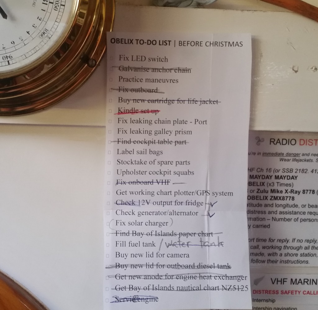- an on-board VHF in working order (which just needed to be switched to international wavelengths instead of its default USA setting)