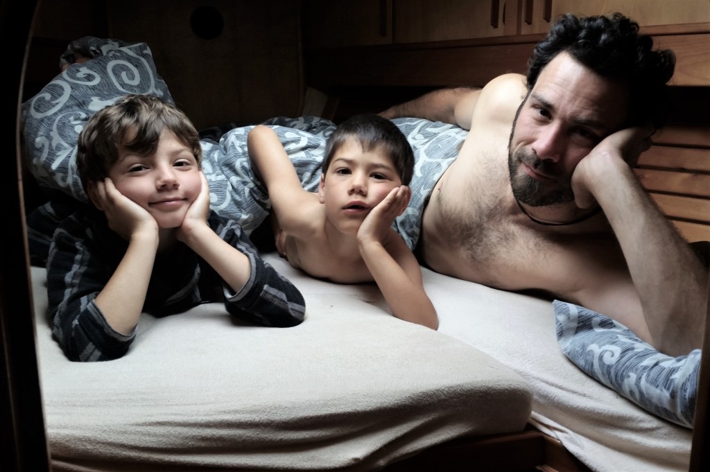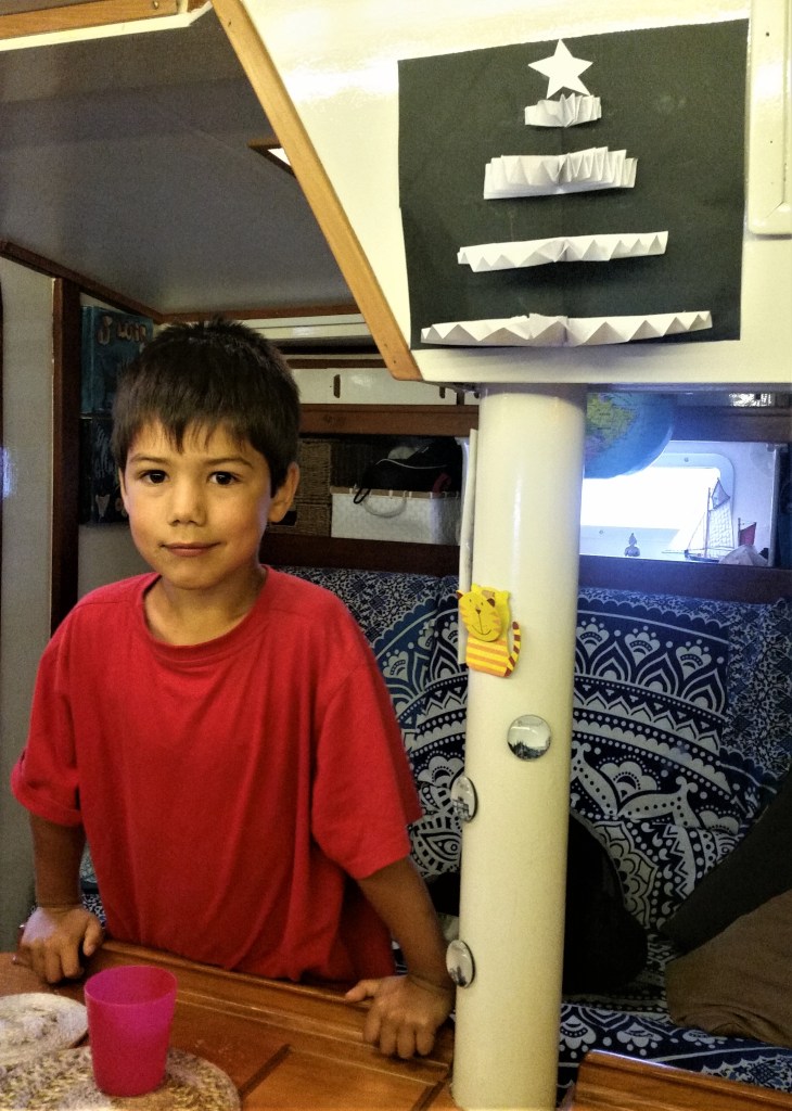 So no sailing lately but a lot going on, so much that we are on edge and exhausted before even starting our summer sailing adventures. No need to say that, during that time, the rule of having the boat tidy and ready to go within the hour was thrown out the window. Instead, we evolved in an uninterrupted state of chaos, with visual and physical clutter everywhere in the boat, with tools, parts, origami by dozens brought back from Kelly Club (after school care program), and makeshift Christmas trees and huts tirelessly built by Azur using any items found in his cabin. We’re slowly reining in the mess and sending love & kindness messages to our overloaded brains, that everything gonna be alright. And since we’ve finally made sense of the on-board VHF (yesterday eve), I believe we’re safe indeed.