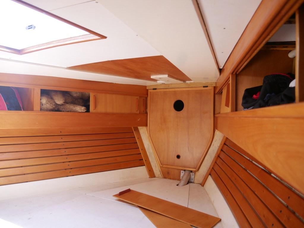 - a freshly vacuumed, and bleached V-berth