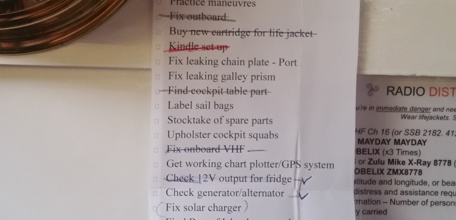 - an on-board VHF in working order (which just needed to be switched to international wavelengths instead of its default USA setting)