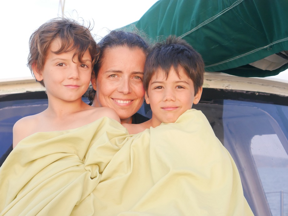 Fortunately we have access to a private 24-hour-7 mental support/personal coaching/diesel engine helpline which we use and abuse, calling our friends Thomas and Claire time and again. All in all, it takes us four days, no less than 20 phone calls, and a prayer (yes a prayer, hands clasped and all, as I’ve collapsed on the couch, taking a break from my mechanical duties, crying, and begging whoever is listening to make this engine run and soon, please) to diagnose the issue and find a viable solution to resume our cruise. All the while keeping a semi-interesting summer holiday program for Zephyr and Azur who’ve been extra patients, allowing us to work every day until 3 pm before begging us to go play ashore.