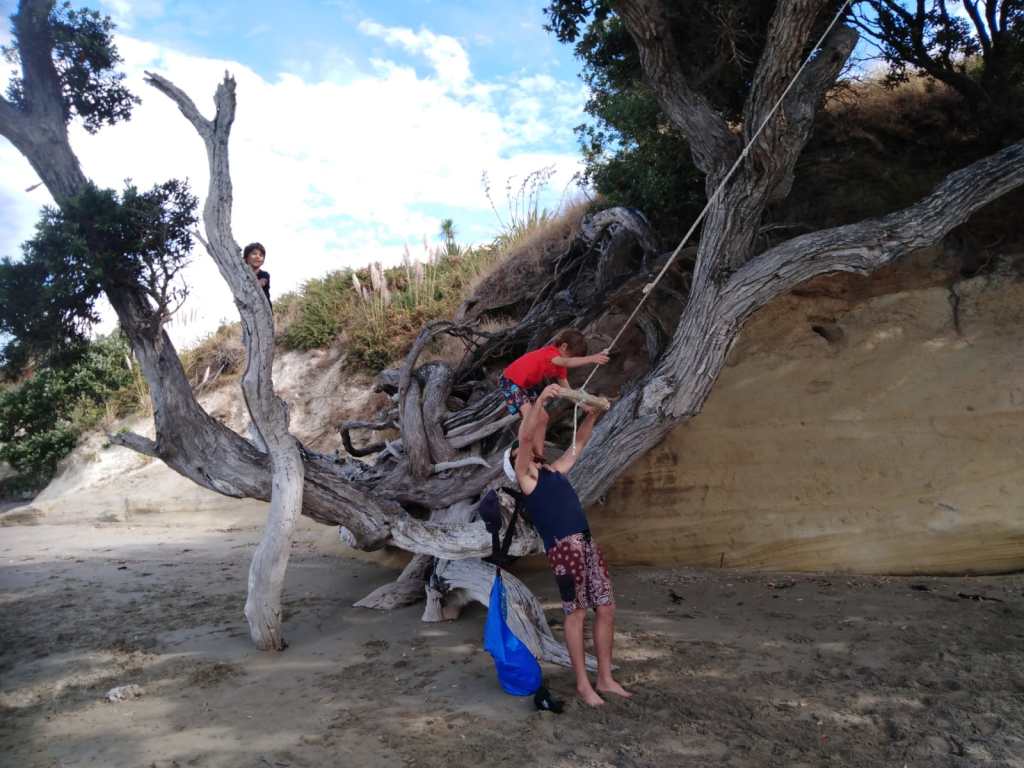 And speaking of sailing, I’m so glad we took Obelix for a wander in the gulf last week-end and intently savoured the dizzying freedom bliss before this whole madness. Although the lunch in Calypso Bay, our swim in crystal clear water, our walk in the bush with Tuis carelessly serenading us, our swinging under a big Pohutukawa tree on the white sandy beach of Snapper Bay, our 3-star dinner with fellow sailors in Blackpool, our morning yoga session on the deck, followed by our diving off the boat and sailing back to Bayswater all seem a long way away, they are memories we will hold onto tight until we’re on the other side.