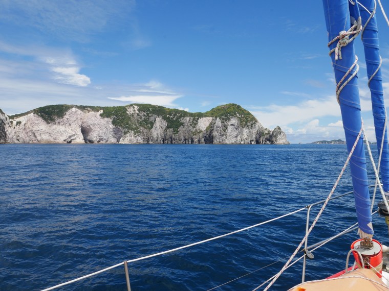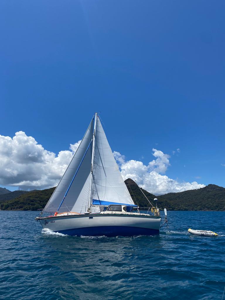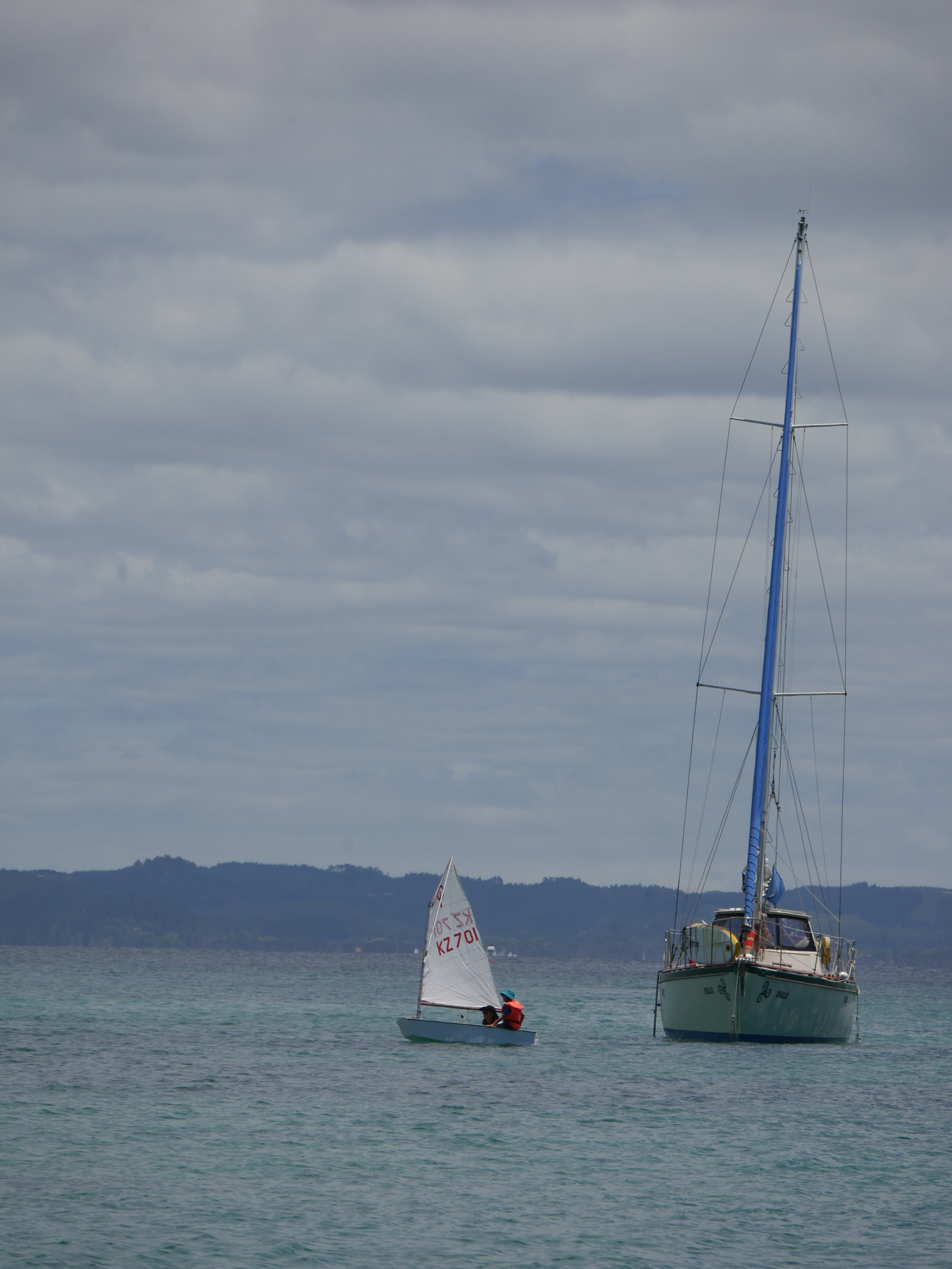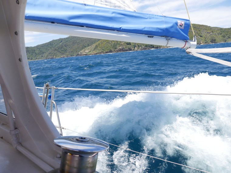 After the morning stillness which, determined to get to Great Barrier that day we had to disturb by the thrum of our engine, the breeze, although on the forecast, has taken us by surprise. Despite white caps proliferating on the water, our hair floating horizontally, and the impossibility to hear each other because of the whirling wind, we maintain our composure getting the dinghy back on deck to get away as soon as we can, taking two reefs in the main and opting for the stay sail. No sooner are we venturing in the open sea, that we hear the VHF calling ‘Obelix, Obelix, Obelix for Cirrus, we can see you!” What a pleasant surprise, and a relief. Someone knows we’re here, and the boat we distinguish in the distance, the only one, is sailed by friends and not pirates! I still look back regularly to make sure we take the untamed waves – that come crashing from behind – in a decent angle and don’t send the boat flip-flopping too much, but I’m afraid I miss a few times, and everything inside the cabin that can fall does so with a loud bang. No rest for my adrenal glands though, as if the wild waves were not enough, I soon find myself exclaiming “A whale!”, quickly followed by “Shit, a whale, what should I do?”. Which inspired the following haiku:
