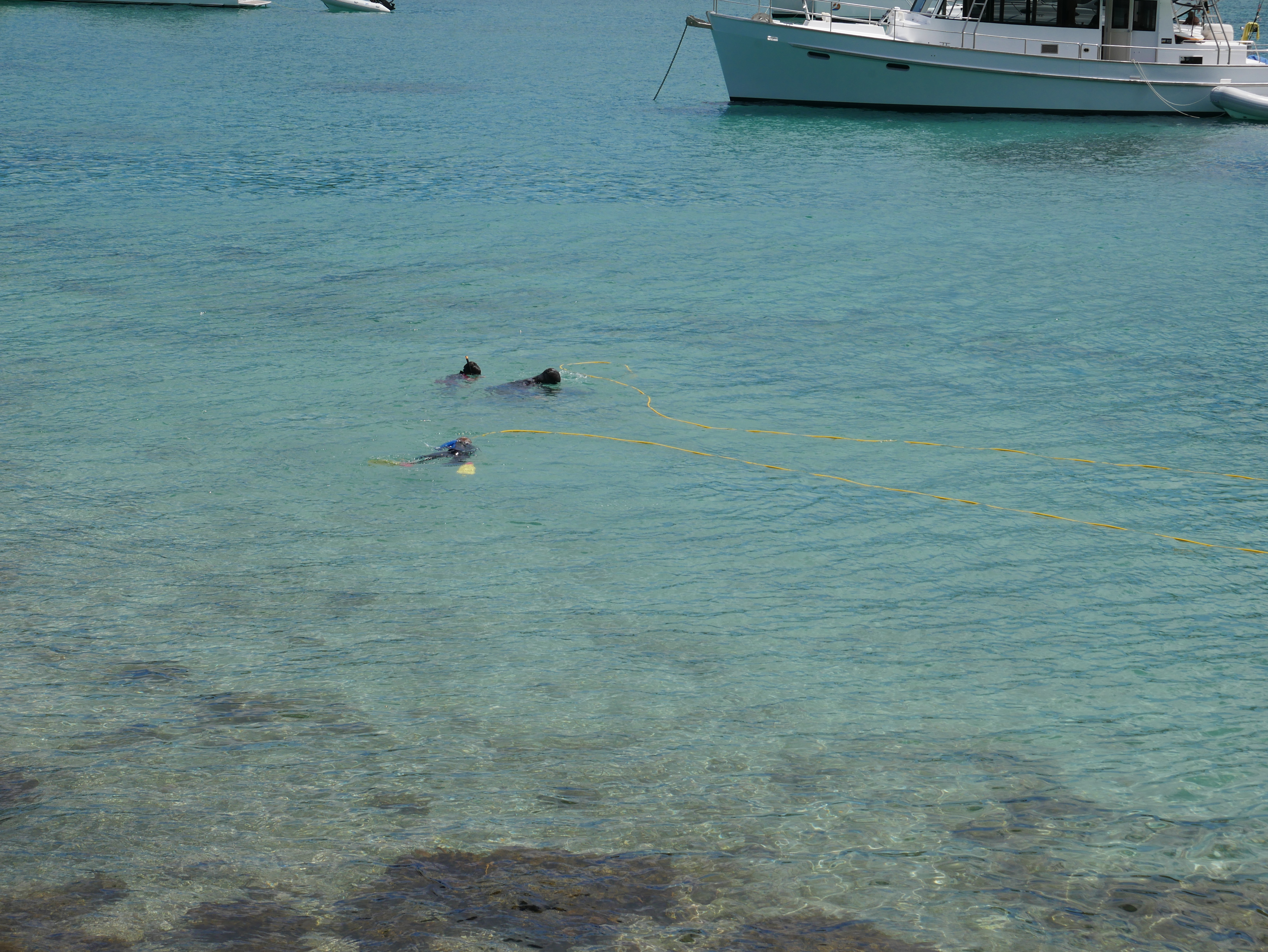 What these three black dots at the surface of the water on the last picture? Thomas supervising the kids having a go at Dan’s “hubble-bubble”, a.k.a Hookah Diving System, which allows them to breath underwater without tanks. They loved it!