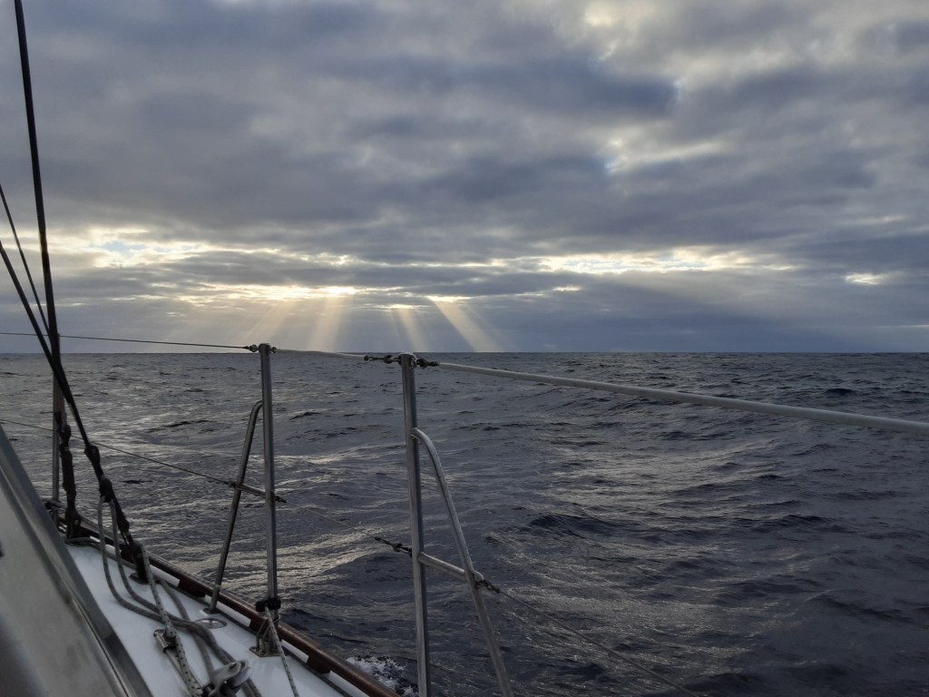 And so, after the first twenty-four hours it took us to leave land behind and truly get offshore, we were treated to what people commonly refer to as the “washing machine”. A couple of days and nights of twenty knot winds in three-and-a-half metre waves hitting us on the side every ten seconds or less. At the end of each watch, when I felt most tired and vulnerable, and was about to be released from duty, the moment I both longed for and dreaded would come, where I’d invariably have to go below deck, make my way to the heads to pass the tea I had seeped on for the previous three hours, before getting into bed. There was one minor hiccup with this plan: doing my deed while holding on to the appendix I had once thought of as an oddity next to the toilet when first visiting Obelix – a handle, but proved to be a life saver under the circumstances not to get thrown around the head’s walls while trying to pee, sent my body in resonance with the jerking motion of the boat, and I only had time to rush back out to empty my stomach in multiple bouts of retching, thankfully, in the bucket placed on the cockpit floor and strategically filled with a bit of water to make the rinsing over the sides easy. During these early days, I could convince myself that despite the physical discomfort, the mental benefits were immense with an unrivaled sensation of emancipation, trust and surrender, nevertheless I couldn’t help but secretly promise myself that once this offshore passage was over, I’d never do another one.