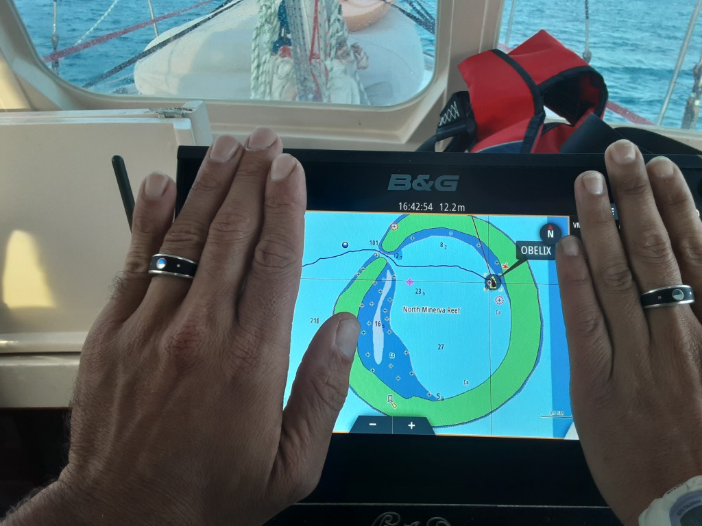 From the get go, during our passage from New Zealand to Fiji, we’ve formed the hope to stop at Minerva Reef, but only if it was reasonable, weather-wise, to do so. Our hopes are crushed time and again by the models and our weather router (MetBob) who advises the detour will unlikely be achievable with winds intensifying from East-NorthEast. Regardless, as stubborn French people, when we’re told to turn North, we keep putting as much East in our course as we possibly can (some friends are even concerned our compass may be having a fit as they see us head towards Chile) observing that the reality doesn’t quite match the predictions, with winds lighter than anticipated and with enough South in them to let us keep Minerva on the cards, almost comfortably (hear, we’re very lucky that our boys are as curious as us to see the much-talked-about lagoon, that they’re ready to endure the constant bashing, although at some point Zephyr, who is preparing something in the galley, throws the towel: “Can someone else do it, I’m sick of being thrown against the walls!”).