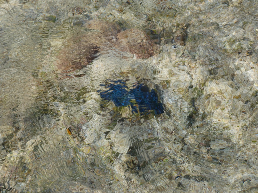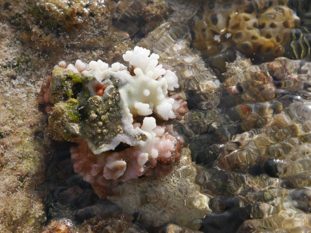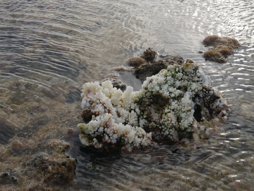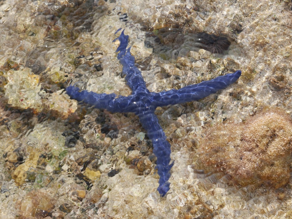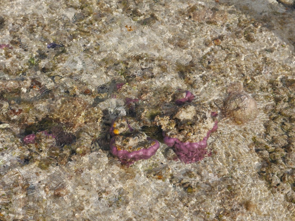 We feel like explorers on a faraway planet, disturbing the locals with our heavy steps. Unusual ground under our feet and hundreds of creatures with the weirdest colors scattered among a dull brownish “soil”, a moray eel waking up on our passage and squirming in a panic in the shallow water before seeking refuge under a rock, and the monotonous roar of the oceanic waves in the distance.