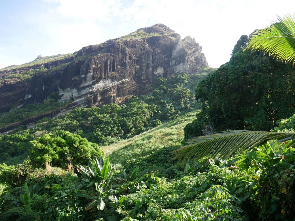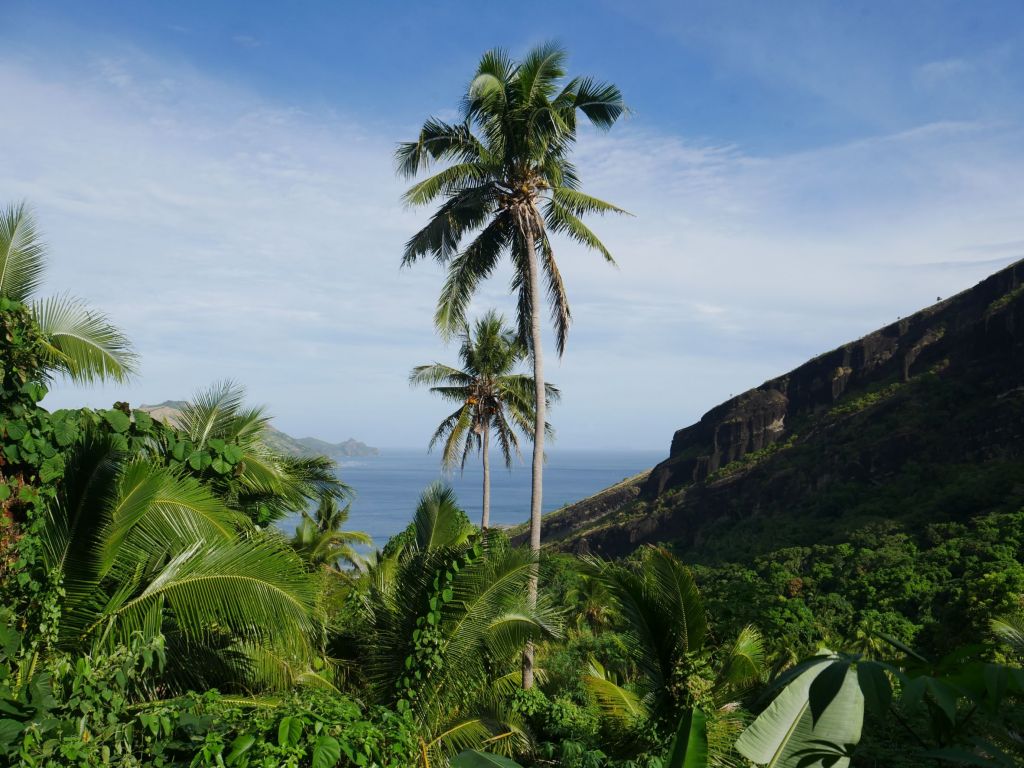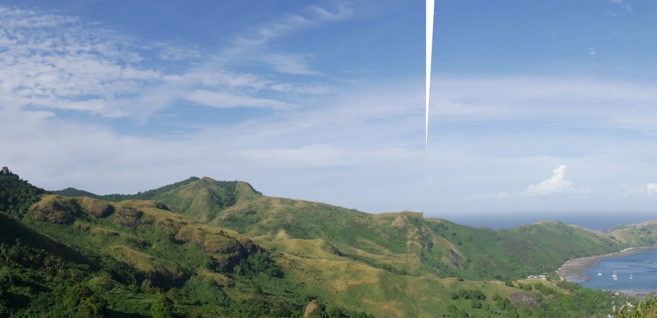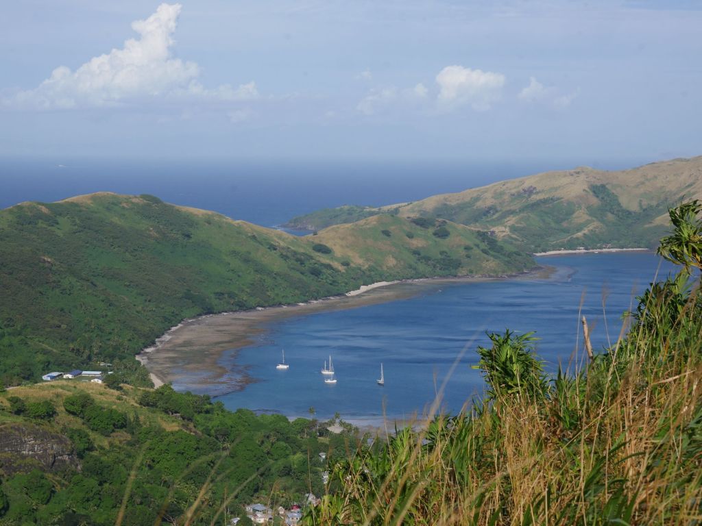As soon as we passed Southern tip of Waya Island, we took in the tall and majestic cliffs of Yalobi, often described as one of the most iconic Fiji villages for that very reason, and fell in admiration with the black barren rocks, contrasted by the gold of dry grass growing on the exposed sides of the hills, the fifty shades of green of the lush forest of mango trees, cassava patches, and all varieties of palms, the translucent water and the white sandy beach.