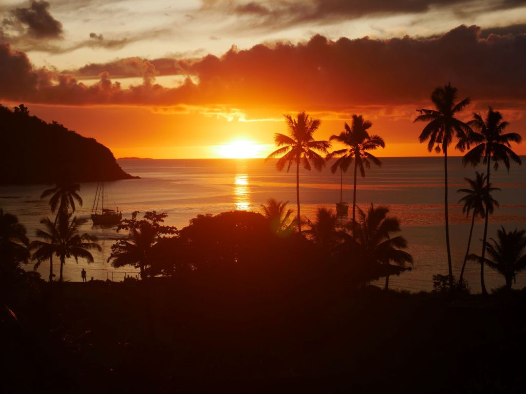 Et ainsi la nuit s’est déroulée, en buvant du kava et en fumant du tabac fidjien, qu’ils coupent en fines bandelettes à partir d’une feuille entière, et qu’ils enroulent ensuite étroitement dans une bande de papier, arrachée d’une page de l’annuaire téléphonique local, roulée en diagonale, ce qui donne une “cigarette” comme un long bâton, d’environ 20 cm de long par 3 à 4 mm de diamètre. Alors que la conversation se ralentit, et que les paupières deviennent plus lourdes, je me remets en route, non sans que mon hôte ne veuille pas me laisser partir sans une lampe de poche pour s’assurer que je ne trébuche pas dans son sentier très pentu. Alors que j’éclaire ainsi mon chemin jusqu’a mon annexe, des dizaines d’ombres s’éloignent de mes pas. Des grenouilles des bois sorties dans l’herbe pour profiter de la rosée qui se forme déjà, chacune prenant une pause de mini-gardien avant de finalement céder la place à ma géanterie. Dans ce sens, la lune ne se reflète pas en chemin de lumière comme à l’aller, mais plonge dans les profondeurs et éclaire le corail que je peux voir presque comme en plein jour, si ce n’est en noir et blanc. Le feu d’ancre d’Obélix me guide, et je suis bientôt de retour à bord, où je suis surpris de trouver Salomé en train de regarder un film. Le kava est censé endormir, mais il est bien plus de minuit lorsque nous allons enfin nous coucher. Heureusement que nous n’avons pas à préparer des boîtes à pic-nique avant que les enfants n’aillent à l’école demain !