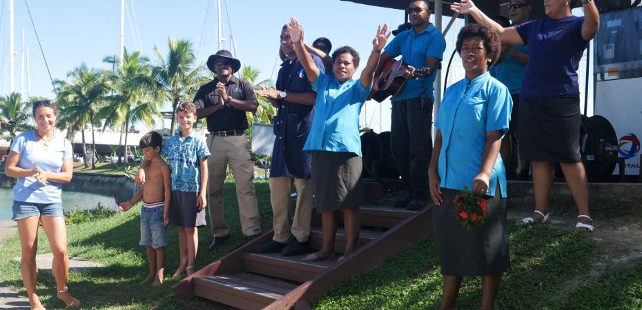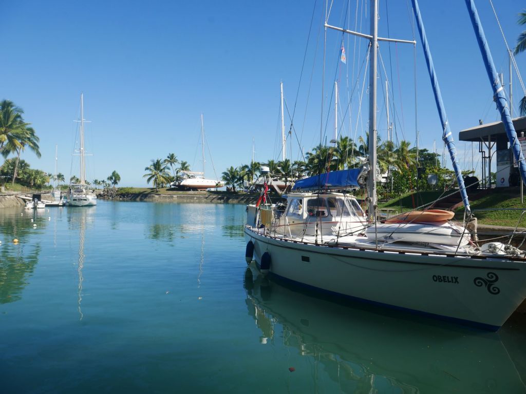 C’est censé être mieux la deuxième fois, non ? Eh bien, ce n’est pas le cas pour notre deuxième traversée des Fidji à la Nouvelle-Calédonie. Avec 685 miles nautiques à parcourir de Vuda Marina à Nouméa, nous avons pris les préparatifs plus à la légère que la dernière fois. Pas de repas de traversée à part nos pots de risotto sec, quelques légumes rôtis au four, et un far aux pruneaux très dense. Nous avons fait le plein de produits tropicaux frais, trop, que personne n’a envie de cuisiner et nous doutons de notre fenêtre météo que nous avons choisie à la hâte après avoir vu quelques bateaux partir. Peut-être avions-nous juste envie de nous faire chanter notre chanson d’adieu par le charmant personnel de la marina de Vuda…