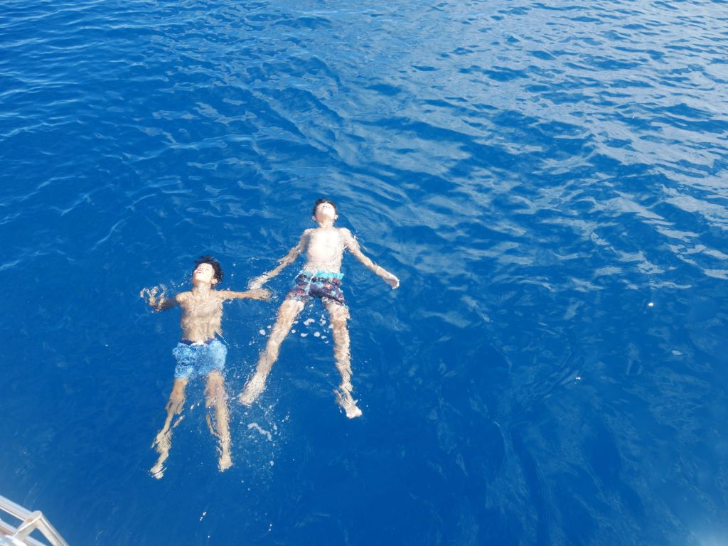 Le premier après-midi pour sortir du lagon se passe principalement au moteur avec un vent inexistant et une mer d’huile. Azur est séduit par l’eau calme et convainc le reste de l’équipage de faire un dernier plongeon après le déjeuner dans les eaux fidjiennes. Lorsque nous sortons de la passe, la houle est établie, et le vent se lève, passant de 3 à 20 nœuds en quelques minutes. Pendant les trente-six premières heures au large, tout le monde est malade l’un après l’autre, et le régime se compose principalement de légumes rôtis et de purée mousseline que certains d’entre nous ne touchent pas. Même la compote de pommes, habituellement un aliment de choix pour se réhydrater, à la texture lisse et au goût identique à dans un sens comme dans l’autre, est écoeurante et trop sucrée. Et les jours suivants, bien que nos corps se soient habitués à la houle océanique et à ses grands murs d’eau qui font monter et descendre Obélix, tout le monde est encore léthargique, voire nauséeux, surtout Thomas, à mon grand désarroi, qui refuse de préparer le dîner un soir en arguant qu’il n’a pas d’apétit et que personne n’a faim. (Je finis par cuisiner des pâtes natures que les enfants et moi dévorons). Les quarts sont passés allongés dans le cockpit, à regarder tranquillement le traceur de cartes pour vérifier les réglages de la girouette et l’ajuster si nécessaire. Le temps semble s’éterniser. Nous pratiquons les fractions et les moyennes, les yeux fixés sur le compteur de vitesse et la distance à destination qui se réduit lentement, en calculant depuis combien de temps nous sommes partis, quelle proportion du voyage total cela représente, combien de temps il reste et combien de temps il nous faudra à la vitesse actuelle. C’est la seule activité à laquelle notre cerveau accepte de se livrer, toutes les autres distractions étant vaguement envisagées puis rejetées comme vaines, représentant trop d’efforts, ou les deux. Comme mettre de la musique, lire, jouer aux cartes, ou même parler ! Les bavardages de la première traversée et les jeux idiots des enfants, parfois irritants mais représentant au moins une distraction dans la monotonie des jours tous semblables les uns aux autres, me manquent. Finalement, nous nous remettons et les menus sont un peu plus sophistiqués et les repas plus animés, malgré la gite et la houle qui menace de renverser notre soupe au potiron. Nous n’avons pas perdu notre sens de l’humour, et chaque fois qu’une vague nous fait trébucher en nous faisant rouler de droite à gauche pendant quelques secondes, nous pouvons entendre un “Ole !” general pour imiter notre petit ami Unai, qui fait de même quand il pète.