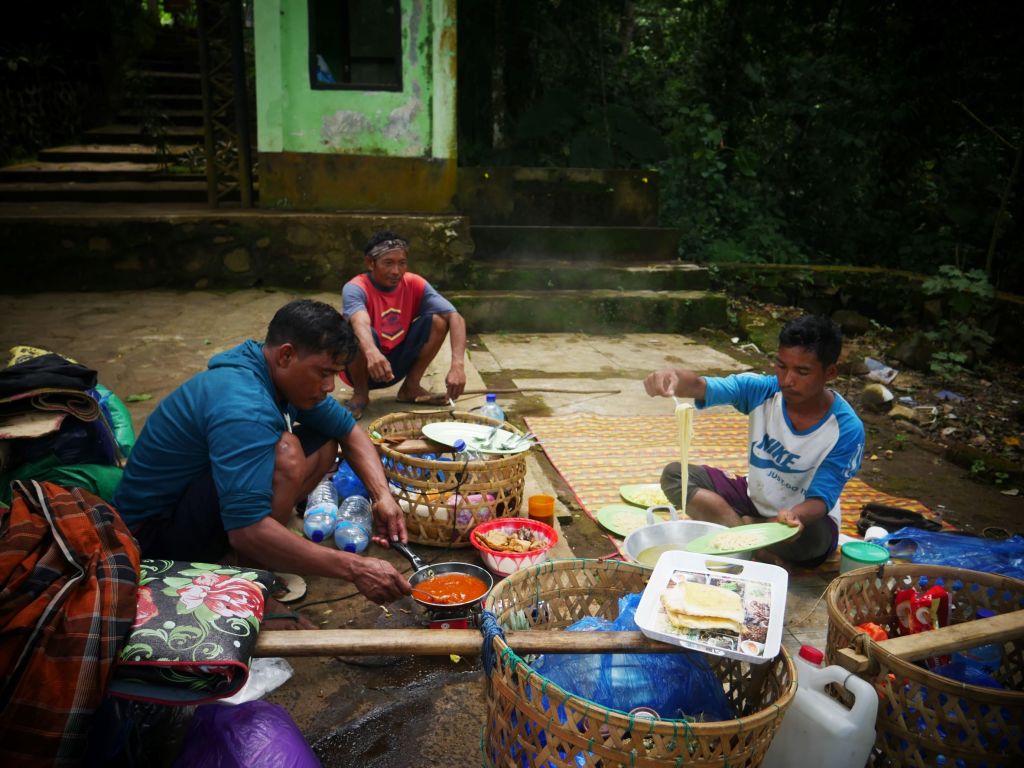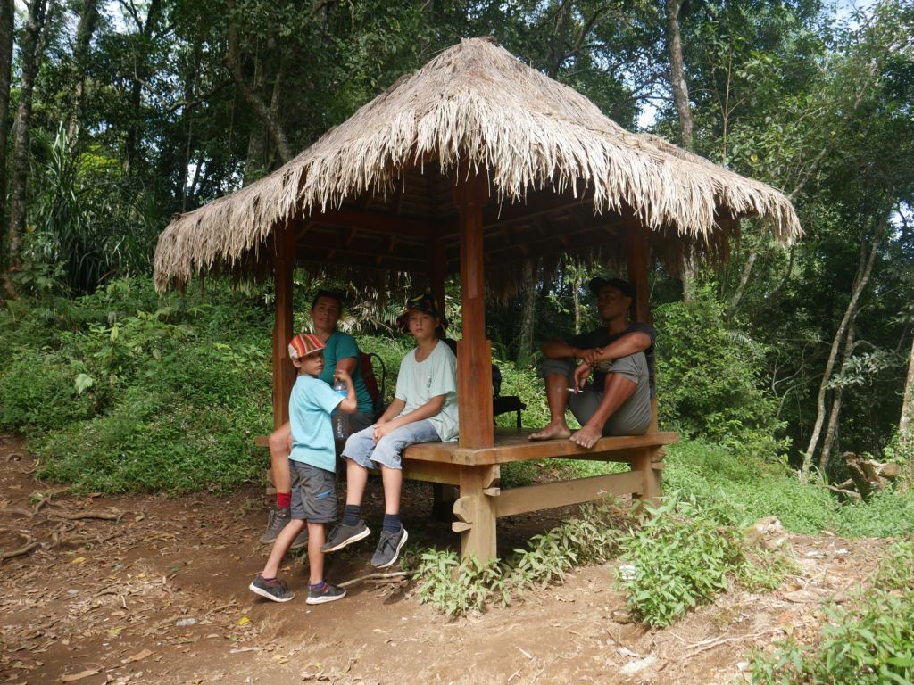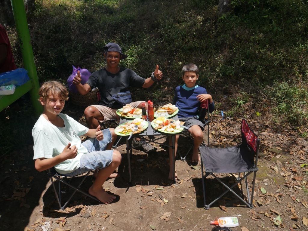Ce qui avait résolument fait pencher la balance en faveur de la réalisation de la randonnée, malgré l’investissement substantiel requis, était un plaidoyer brillamment articulé par Zéphyr, dont j’avais sollicite l’écriture comme devoir scolaire, qui avait souligné précisément, comme l’un de ses arguments phares, qu’il serait agréable d’avoir de la nourriture préparée pour nous pour le petit-déjeuner, le déjeuner et le dîner pendant deux jours. (“[…] Le matin, nous nous réveillons de bonne heure et nous allons à la salle à manger,… TADAA ! Un petit-déjeuner indonésien est servi […]”) Ainsi qu’un changement de paysage bien nécessaire apres tant de joursau ras de l’eau, et la construction de l’endurance, pas seulement des connaissances géographiques, à travers notre voyage.