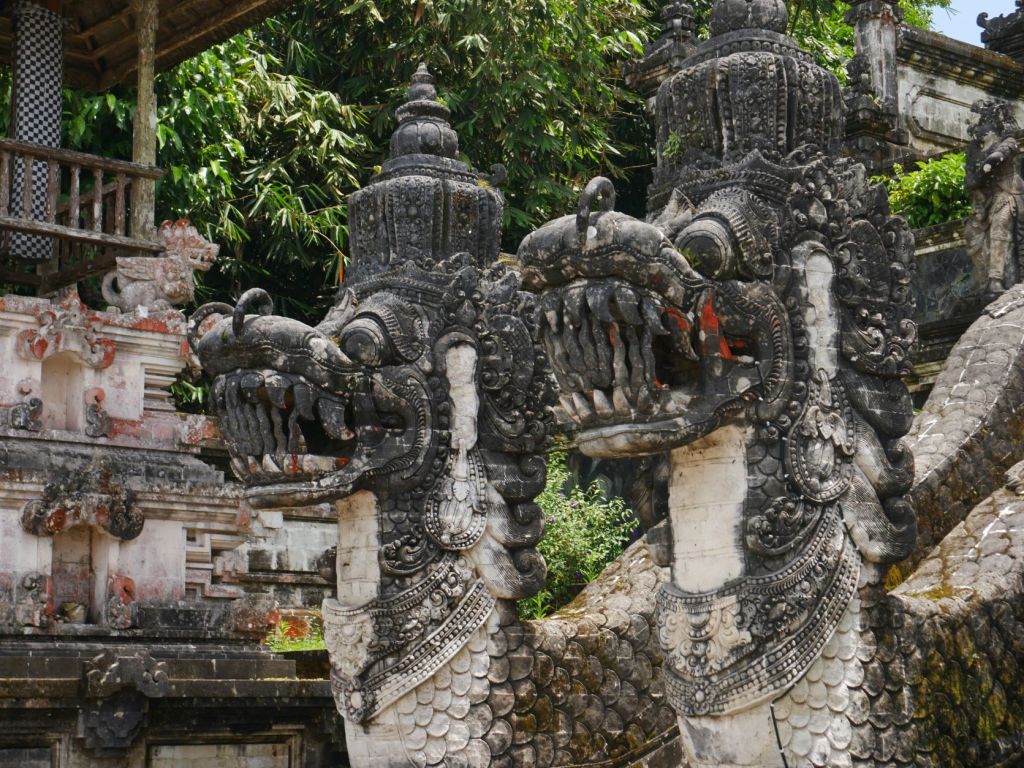 It’s a shame that this experience should tarnish the visit of an otherwise impressive 11th century temple on a prime location, with magnificent views on the surroundings valleys of bright green rice fields, and a multitude of stone sculptures and ornaments, including three massive, long and steep stairs and gates leading to the praying area, bordered by long-tailed dragons, with intricate necklaces, earrings, and jewel crowns.