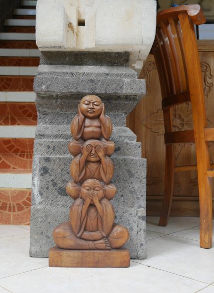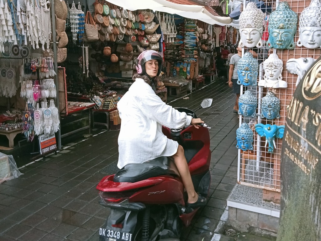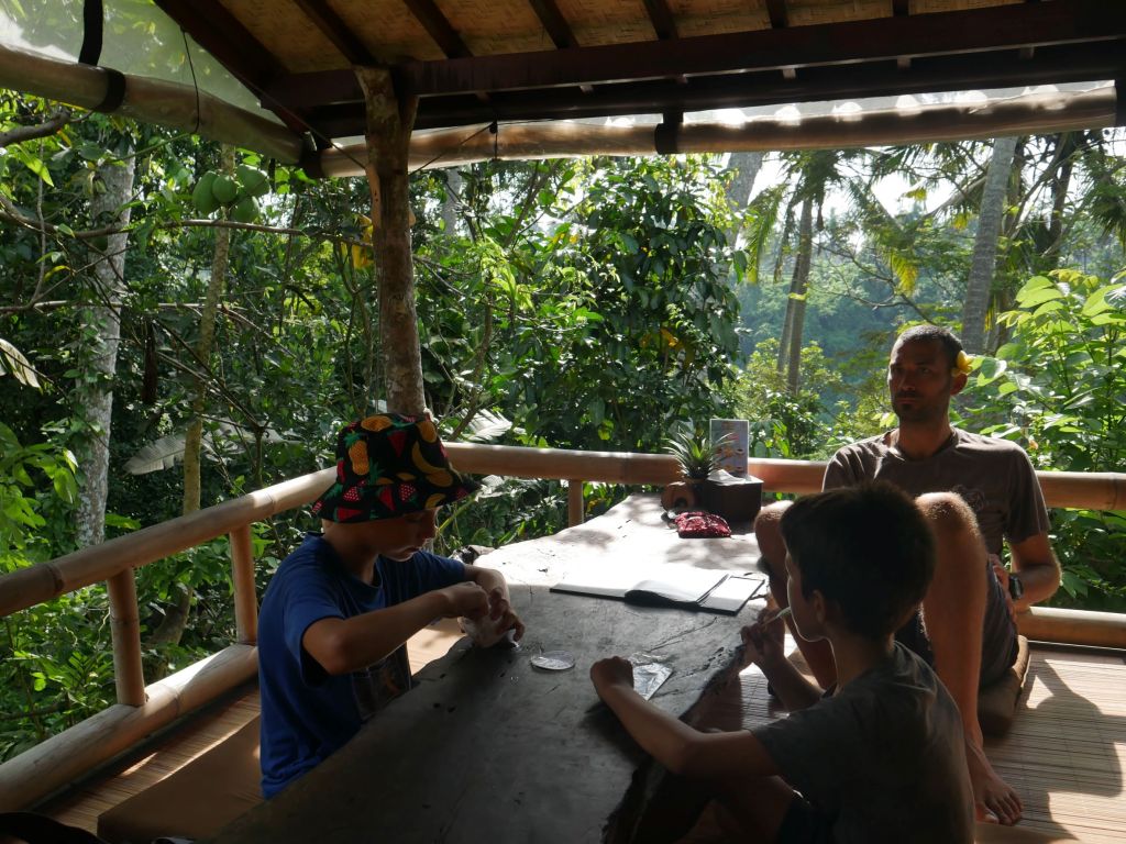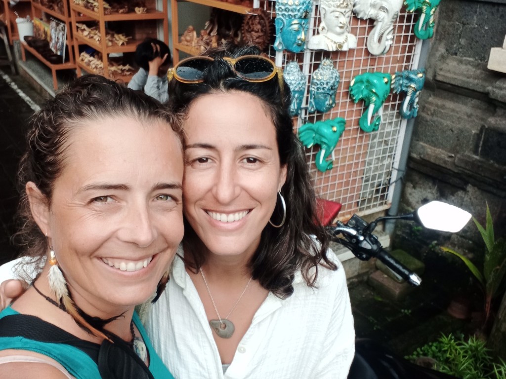 “Maman, il y a quelqu’un pour toi !” Quel plaisir d’entendre ces mots, sachant que Zéphyr parlait sans doute de Juliana. Comme ces mots sont agréables et presque étranges, après plusieurs mois passés en isolement dans notre cocon familial, d’être attendu par quelqu’un. Mes yeux se sont gonflés de larmes de joie. Oui, au milieu de nos pérégrinations maritimes, nous pouvions encore réussir à retrouver de vieux amis, et c’est ainsi qu’au milieu de la folie touristique d’Ubud, mon amie Juliana, que j’avais rencontrée à Montréal il y a plus de quinze ans, qui était devenue balinaise depuis trois ans, juste après que je l’ai vue pour la dernière fois en Nouvelle-Zélande, dont elle s’était évadée in extremis avant que tout le pays ne soit confiné, et qui était sur le point de s’envoler le lendemain pour l’Afrique du Sud, était ici, à notre hôtel, Sania’s House, pour me voir.