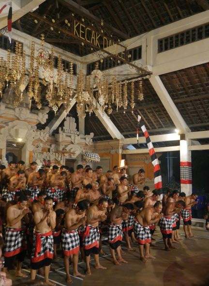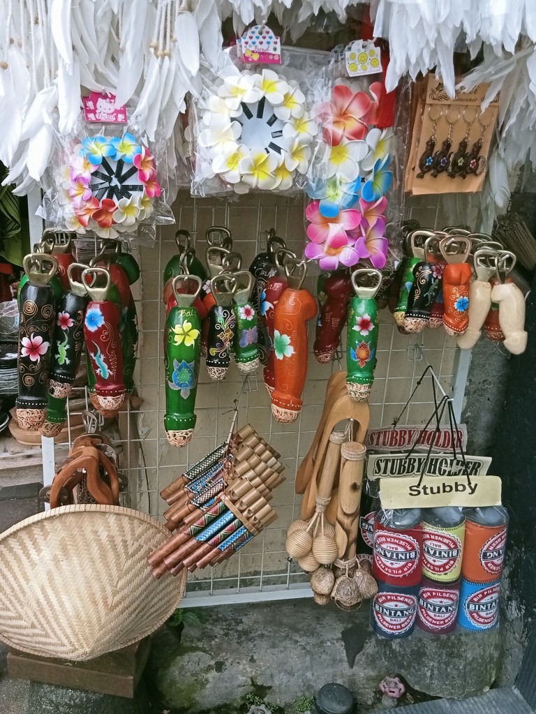 Elle nous a décrit la vie à Bali, les innombrables offrandes quotidiennes qui occupent les Balinais, le privilège d’avoir eu, pendant le Covid, la quasi exclusivité des meilleurs endroits de l’île, plages et temples confondus, dépourvus de touristes, et nous a informés de son prochain projet, le tournage d’un documentaire sur un bateau d’expédition le suivant de l’Antarctique aux îles Galapagos. Nous avons partagé les moments forts de notre séjour à Ubud jusqu’à présent, comme le fait d’avoir été choyés par un massage de bienvenue à l’hôtel et notre longue marche sur la crête de Bukit Campuhan le matin même, récompensée par un petit-déjeuner gourmand (avec glaces, café glacé et jus de fruits frais) avec vue sur la jungle, au Warung Bukit Sari. Nous avons partage notre pietre opinion de la valeur artistique du spectacle de danse Kecak offert aux touristes, dont les dix premières minutes pouvaient impressionner mais qui devenait assez ennuyeux pour le reste de l’heure s’il ce n’etait pour les costumes exubérants et l’élégance des danseurs. Nous avons évoqué nos amis communs, l’exil, les ouvre-bouteilles et autres souvenirs évocateurs rappelant le Butan vendus sur le marché à propos desquels nous n’avions osé nous enquérir ni l’une ni l’autre (mais qui avaient interloqué Azur au point de soulever cette question plutôt pertinente “Pourquoi doit-on se couvrir les bras et les jambes alors qu’ils vendent des pénis dans les rues ?”) et l’état préoccupant du monde entre catastrophe climatique, inflation mondiale et guerres qui jettaient une ombre sur nos vies par ailleurs passionnantes.
