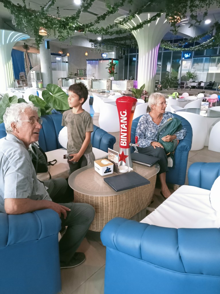 Les résultats sont revenus plus tôt que prévu (j’avais envoyé Thomas et Azur chercher de la nourriture à emporter en ville et j’ai dû les rappeler). Négatif pour le paludisme et la dengue. Rien à signaler, il devait s’agir d’un virus banal. Nous avons reçu le feu vert et sommes retournés sur le front de mer. J’ai invité Pascal et Marie-Laure à se joindre à nous pour un dîner de célébration dans un endroit que j’avais repéré sur Google Maps mais que j’aurais dû m’y attendre, nous nous sommes retrouvés dans un restaurant bling-bling surdimensionné, hors de prix, à la nourriture moyenne où nous étions les seuls clients, et où ils ont réussi à foirer la moitié de la commande et à oublier mon plat, si bien que je n’ai grignoté quelques parts des pizzas des enfants (j’ai fait un cauchemar à ce sujet la nuit même). Api Biru (Feu et bleu). On ne m’y reprendra plus!