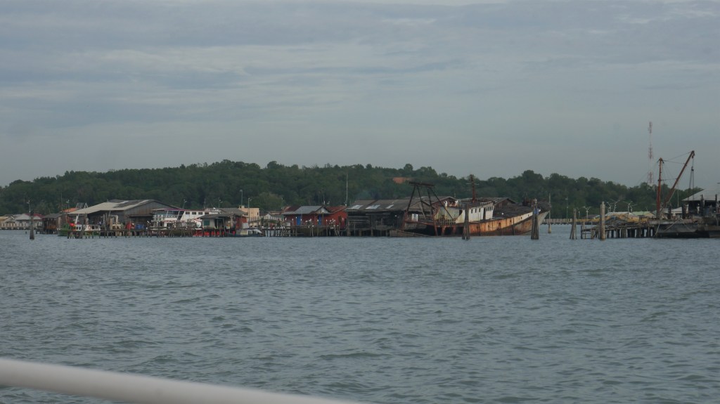 À moitié rassurés, nous nous sommes endormis, mais avons été réveillés à 3 heures du matin par une bourrasque qui secouait à nouveau le bateau. Pas de quoi faire une escale reposante. Nous sommes partis à l’aube, vers 6 heures, crevés mais déterminés à atteindre soit la pointe sud des îles Riau reliées par la route à la ville de Batam, soit Sembulang sur la côte est de Batam, ou encore Tanjung Pinang plus à l’est sur Bintan. En arrivant à la pointe de l’île Mensanak, il est devenu évident que si nous voulions avancer à une cadence raisonnable, notre seule option était Tanjung Pinang, les deux autres destinations étant bien trop au près pour nous. Je me suis effondrée après mon quart du matin et ne me suis réveillée qu’à l’heure du déjeuner, où nous n’étions plus qu’à 8 milles et où la mer était à nouveau calme. Soulagement.