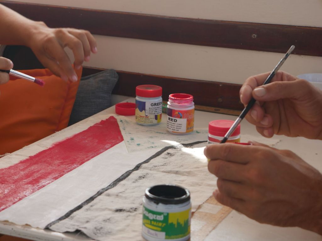 Nous attendons leur visite toute la soirée, essayant d’imaginer leur vie dans cet endroit reclus, mais nous devons attendre le matin pour rencontrer nos “hôtes” et apprendre qu’ils sont affectés ici par périodes de trois mois, loin de leurs familles à Massawa, et qu’ils semblent se divertir de la présence de voiliers en visite. Ils débarquent le matin dans leur long bateau à moteur, tout sourire, vêtus de sarongs colorés et avec de la musique éthiopienne diffusée par leur smartphone. Loin du stéréotype des soldats à l’air sévère portant des uniformes camouflage kaki et des mitraillettes autour du cou.