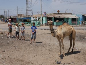 This is when I elope, leaving Arthur to his new business partner, and join Thomas, not far in front with the kids who are very keen to show the town resident dromedary to their friends from Girotondo (whom Arthur is the skipper and dad). Arrived a couple of days before them, we had a wander to buy some fresh produce the day before, and though Azur felt overwhelmed then by the heat, the dust, the incomprehensible babble, and the junk littering the streets, encouraged by his friends’ presence, he is like a fish in the water showing them around as if a local already.