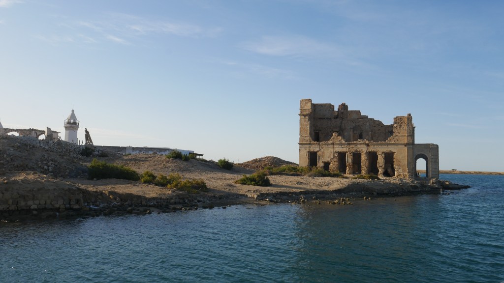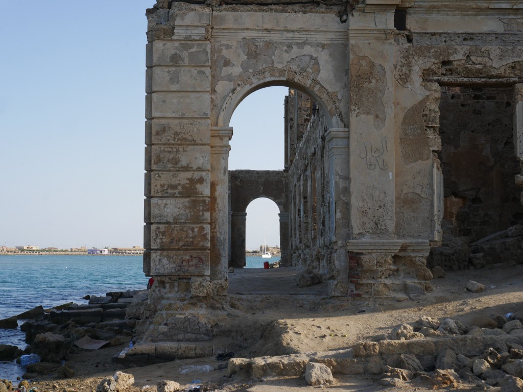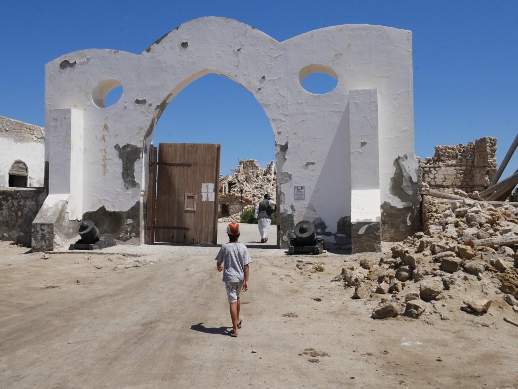Quoi qu’en disent les sites touristiques, il faut faire preuve d’une grande imagination pour se représenter la cité corallienne de Sawākin (ou Suakin), aujourd’hui classée au patrimoine mondial de l’UNESCO, dans son ancienne gloire, à l’époque où elle était un grand port africain et une plaque tournante de la traite des esclaves. De son héritage ottoman et de ses grands bâtiments en pierre corallienne blanche, il ne reste hélas pas grand-chose, si ce n’est quelques façades en pierre sculptée qui tiennent encore debout par la volonté d’Allah, des arches précairement calées par des bâtons de bois, et des ruines squattées par des buses et des corbeaux.