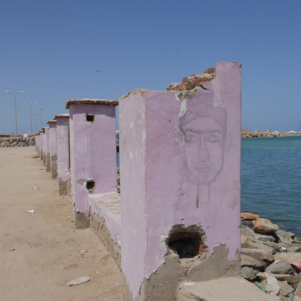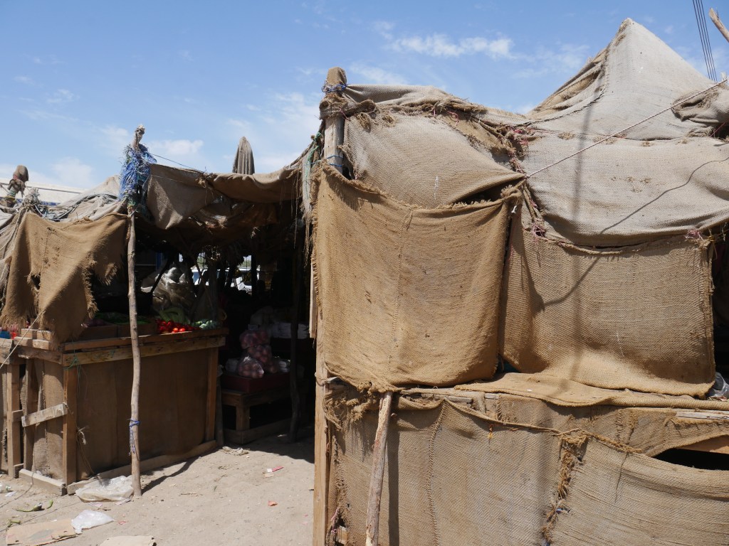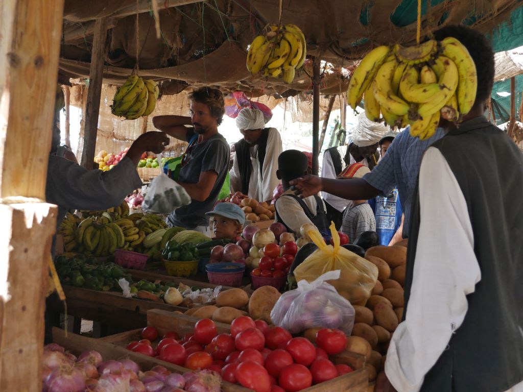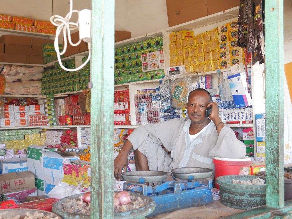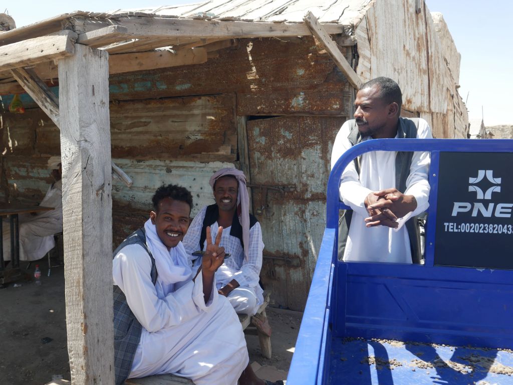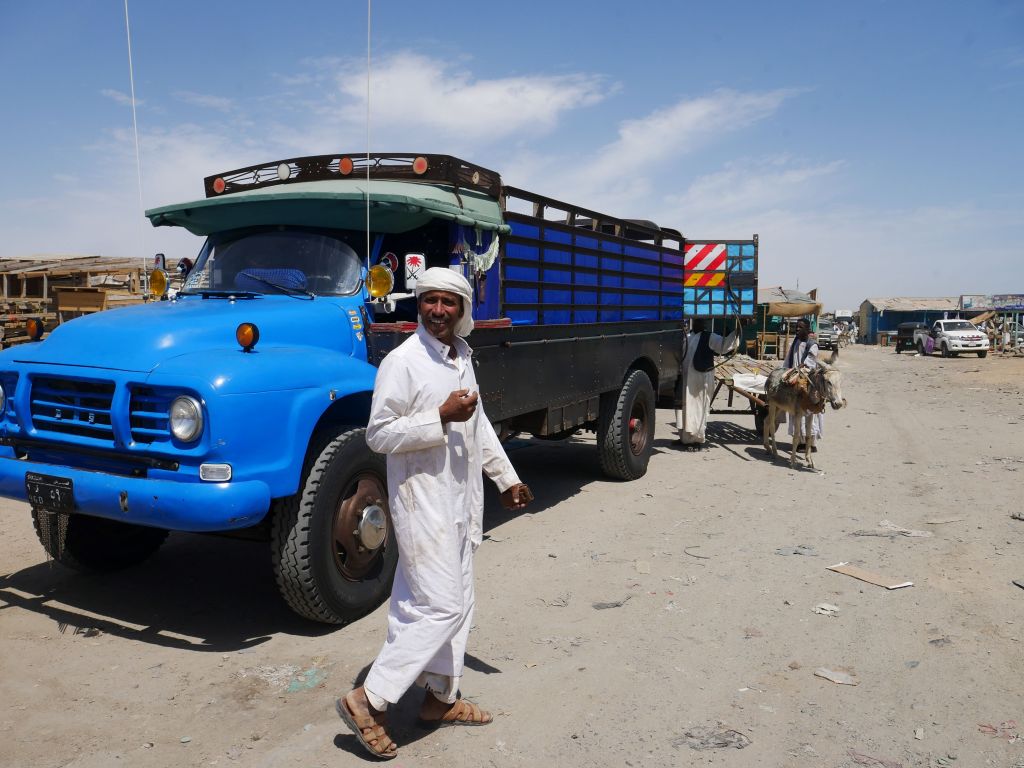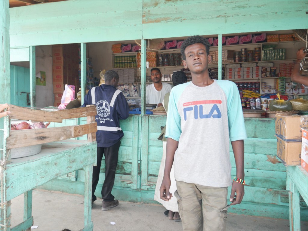 La soixantaine, cheveux gris et barbe de trois jours, un smartphone dans la poche de poitrine, il a la peau plus claire que la plupart des hommes que nous avons rencontrés dans les rues de Sawākin en nous rendant à Souk El Jagar (le principal marché de Sawākin), et contrairement à eux, il ne porte pas le veston sombre qui complète ce qui semble être la tenue des habitants. Malgré son entousiasme pour communiquer, notre manque flagrant d’arabe ou de dialecte soudanais empêche tout véritable dialogue, et toute interprétation de la scène serait purement fortuite, mais je dois admettre un léger malaise lorsqu’il brandit ses clés de voiture vers nous avec un grand sourire, comme s’il demandait à m’emmener faire un tour !