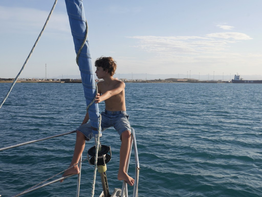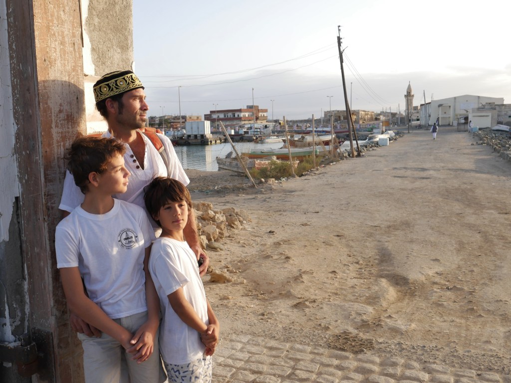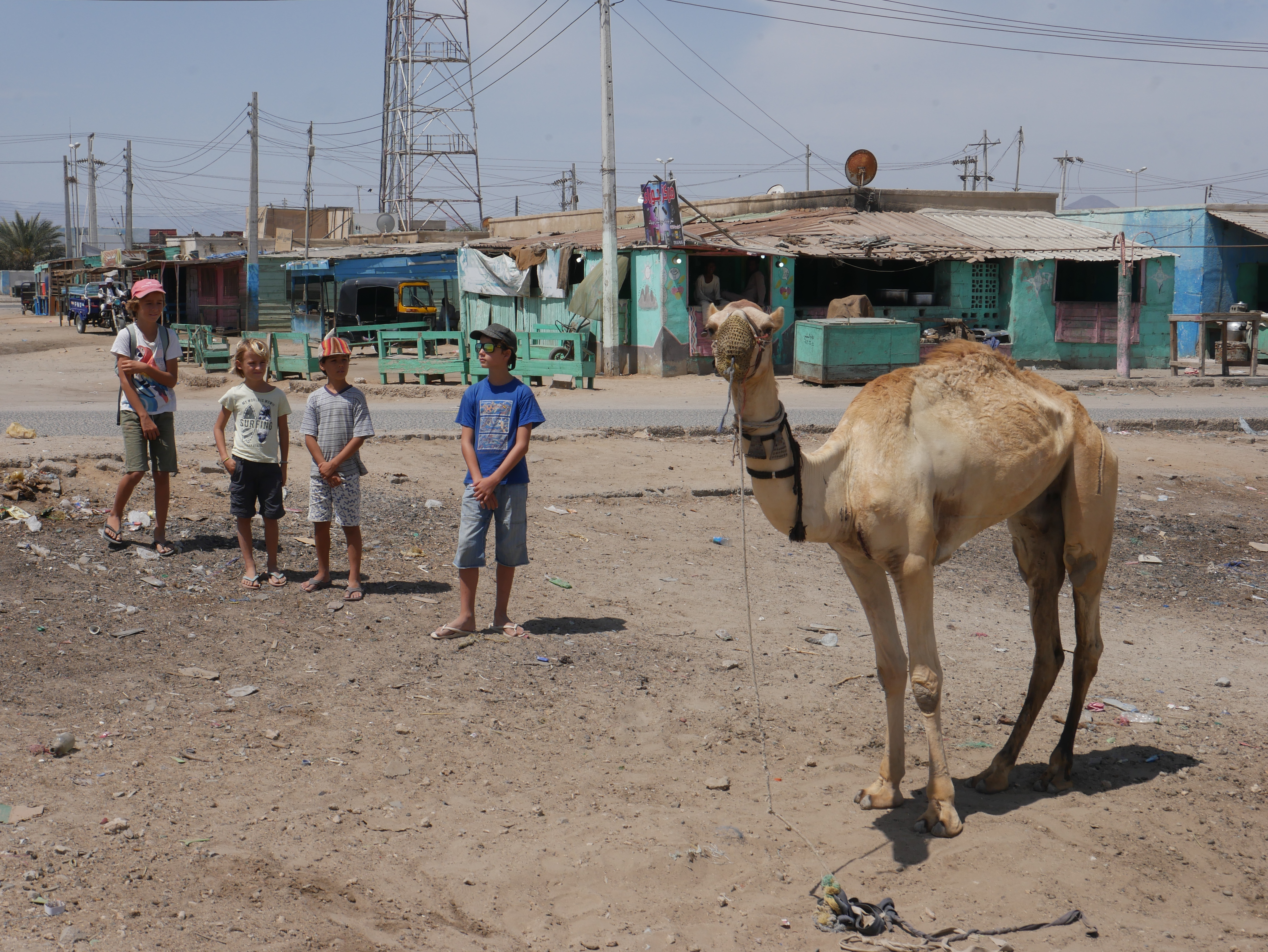 C’est là que je laisse Arthur en plan avec son nouvel acolyte, et rejoins Thomas, un peu plus loin devant, avec les enfants qui sont impatients de montrer le dromadaire de la place du village à leurs amis de Girotondo (dont Arthur est le skipper et le papa). Arrivés quelques jours avant eux, nous sommes allés y acheter des produits frais la veille, et si Azur s’est senti accablé par la chaleur, la poussière, le babille incompréhensible, et les ordures qui jonchent les rues, à présent encouragé par la présence de ses amis, il est comme un poisson dans l’eau et leur fait visiter la ville comme s’il était du coin.