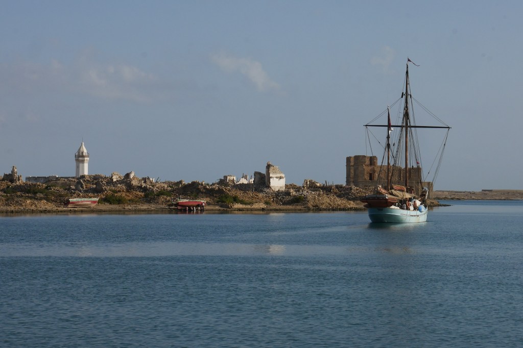 Il faut dire que nous avons quelque raison de nous sentir comme à la maison, car à Sawākin sont rassemblés nombre de bateaux rencontrés au cours de notre périple: à commencer par “Brule-Vent”, notre compagnon de voyage depuis Darwin jusqu’en Malaisie et que nous étions ravis de retrouver (Pascal avait cuisiné une ratatouille en guise de cadeau de bienvenue que nous avons mangée avec lui et son beau-frère et équipier, Jean-Yves, presque dès que nous avons jeté l’ancre), le vieux grément “Yukon” avec lequel Thomas avait passé une journée à faire les formalités à Kupang, “Adelante” arrivé en même temps que nous au Sri Lanka, “Sea Pearl”, rencontré aux Maldives, et même “Deo Juvante”, jamais rencontré mais avec qui j’avais été en contact pour échanger des informations concernant une escale potentielle à Soccotra. Une réunion de famille, en somme !