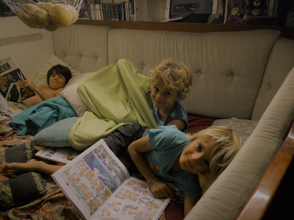 Nous pouvions partir en mission archéologique à terre pour étudier un squelette de dromadaire ou de tortue, organiser des sessions de kite, de kayak ou de snorkeling (en inventant d’ailleurs une nouvelle discipline, le “air kayak”, qui consiste à faire du kayak sans que la pagaie ne touche l’eau, en la tenant en l’air pour se diriger grâce au vent), escalader les collines du désert et observer de loin un minuscule village avec quelques silhouettes chassant des chèvres, s’inviter à une partie de Code Names ou de Decrypto autour d’un café ou d’un dîner, et organiser des soirées pyjamas pour les enfants.