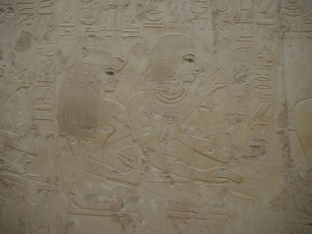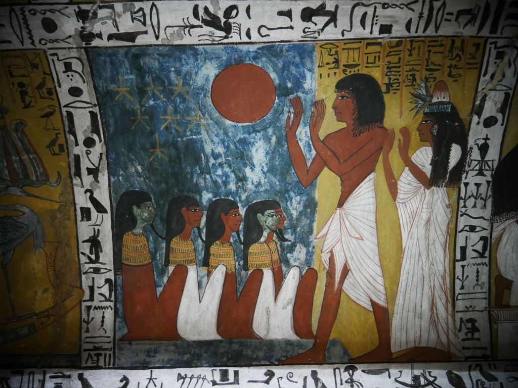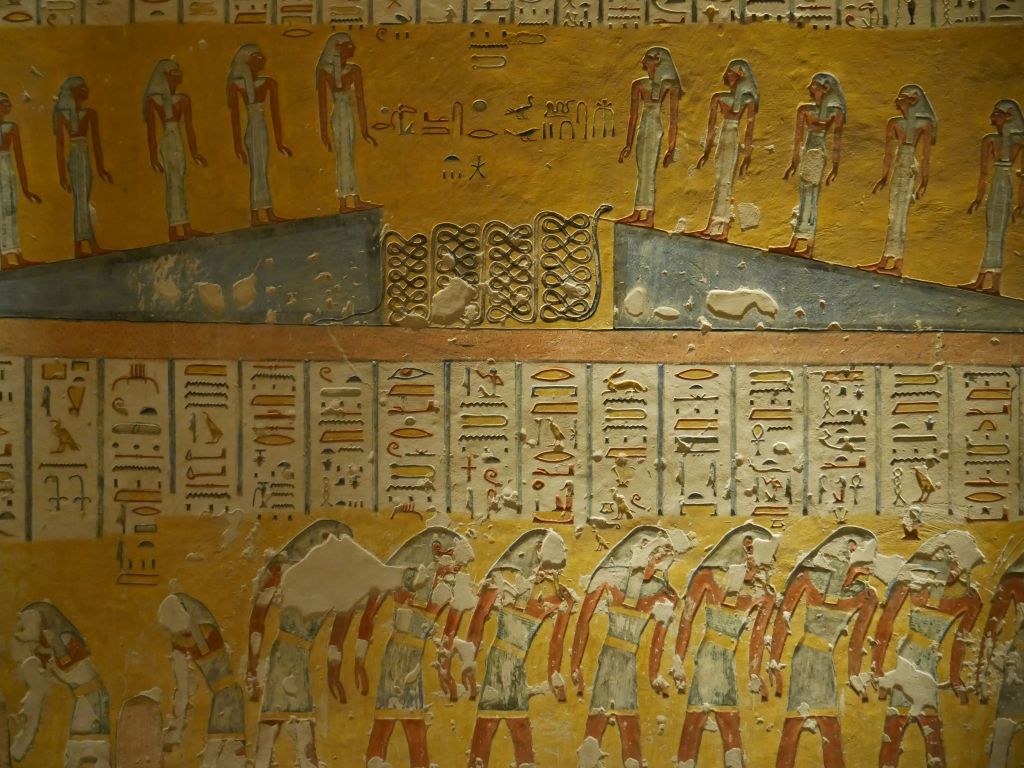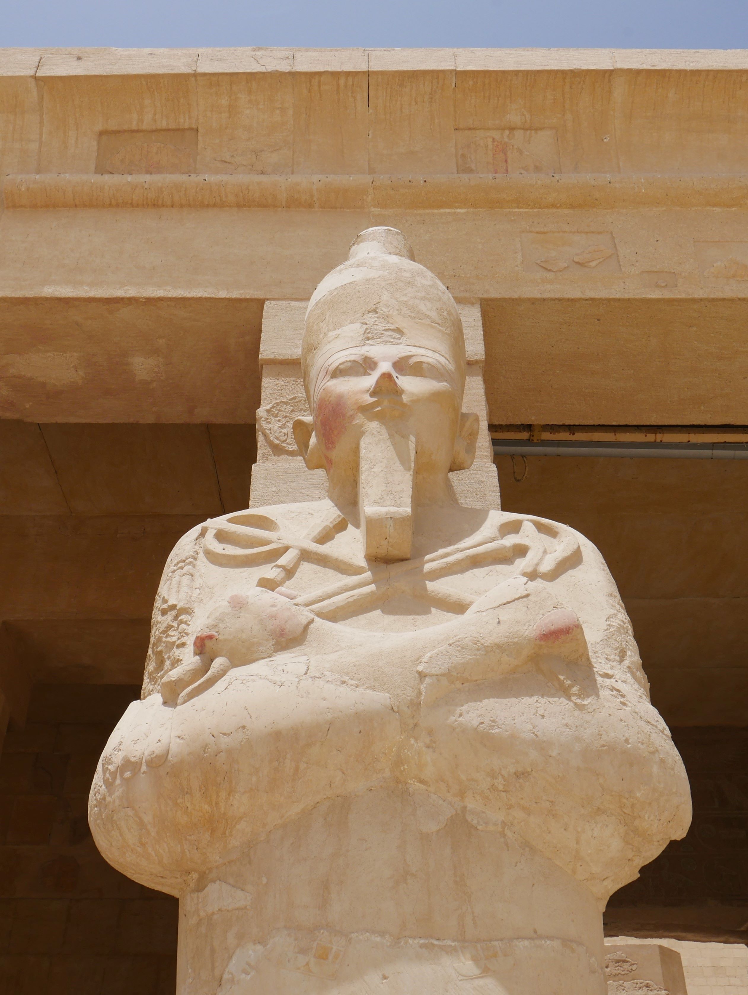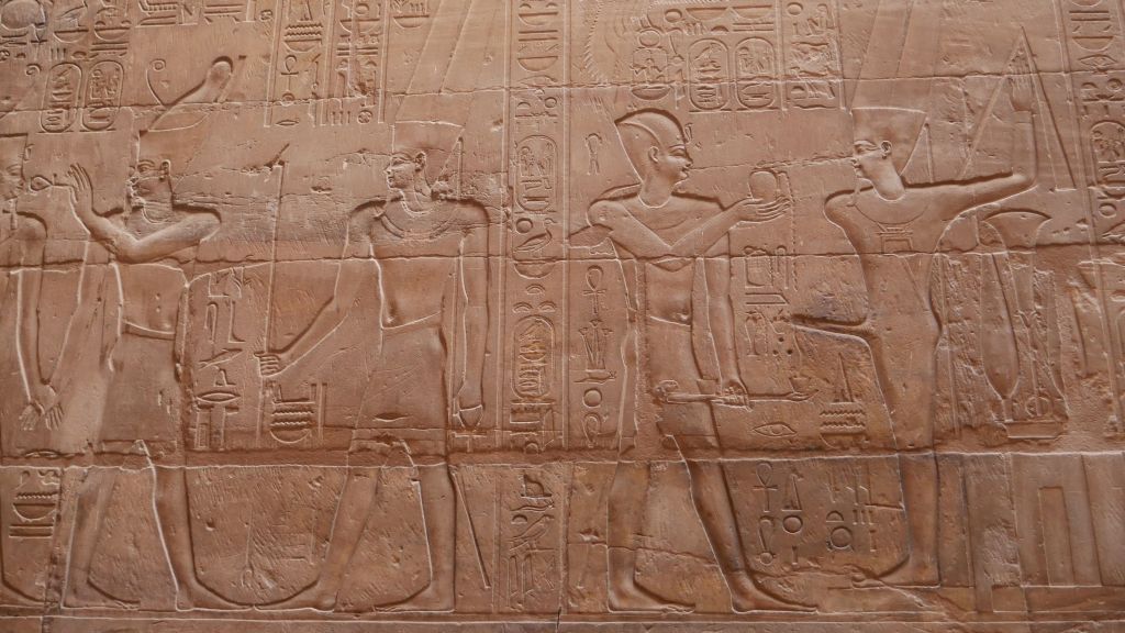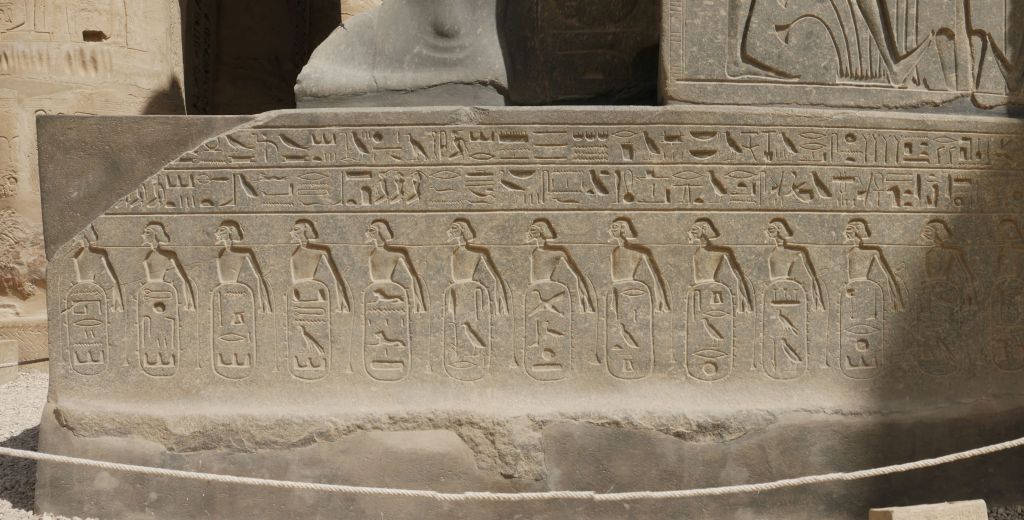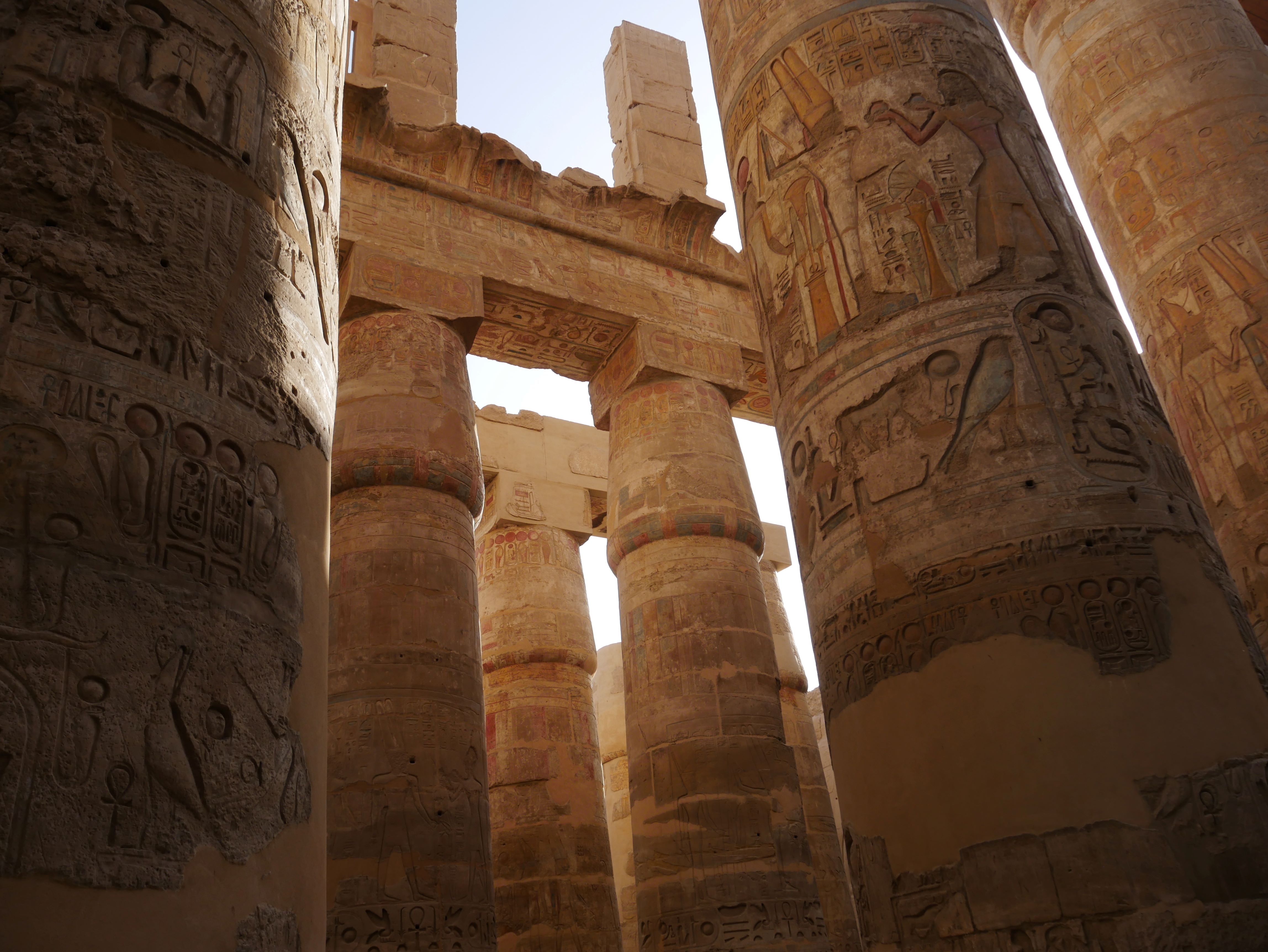 Après avoir triomphé de notre partie de 1-2-3- soleil avec le vent sur la Mer Rouge, donc, les enfants ont été ravis de jouer à cache-cache dans les temple de Louxor, Karnak et Hatchepsut, savourer les mille et un délices du buffet du petit déjeuner de l’hôtel Iberotel, et les mezze des différents restaurants bon marché du coin (El Kababgy, Sofra et Al Shahaby Lane), chahuter bruyamment dans la piscine découverte flottant sur le Nil, admirer les peintures des dieux et animaux mythiques, des ciel bleus étoilés, et des pictogrammes mystérieux, apprendre les rudiments de l’alphabet hiéroglyphe grâce à notre troisième guide Mohammed, dit Momo, s’extasier avec lui de la finesse des hauts-reliefs ciselés du couple aux cheveux frisés du tombeau de Ramose, et écouter avidement les histoires de pharaons, notamment du déclin de l’Empire sous Akhenaton, visionnaire ou mécréant monothéiste, c’est selon, et du sacrement de la reine Hatchepsut, beauté fatale représentée en homme avec des oreilles de vache, qui régna pendant plus de vingt ans, et dont le beau-fils Thutmose III et le petit fils Amenhotep n’ont eu de cesse de défigurer toutes les statues et peintures à son effigie après sa mort. Comme quoi sexisme et jalousie ne datent pas d’hier.