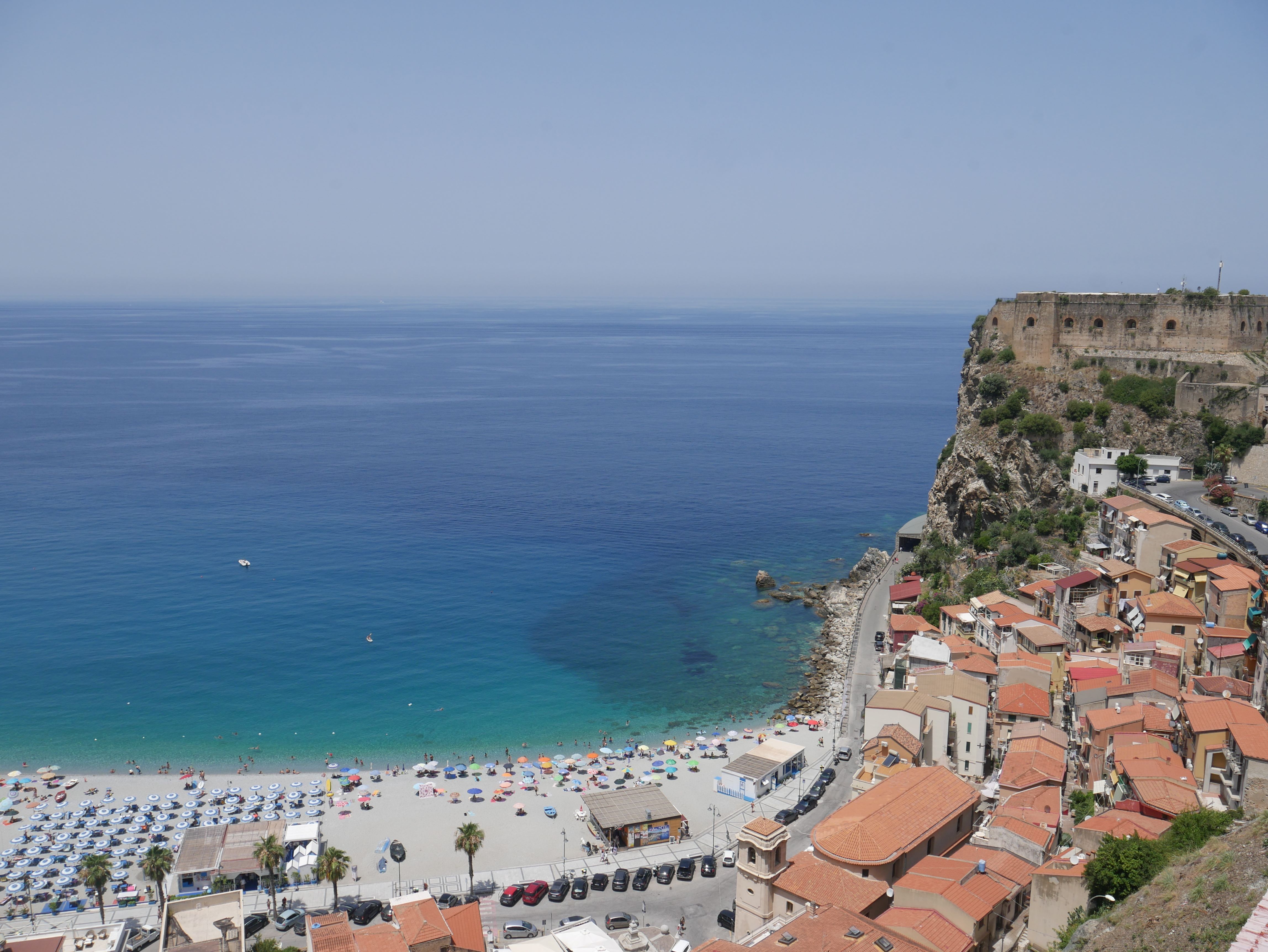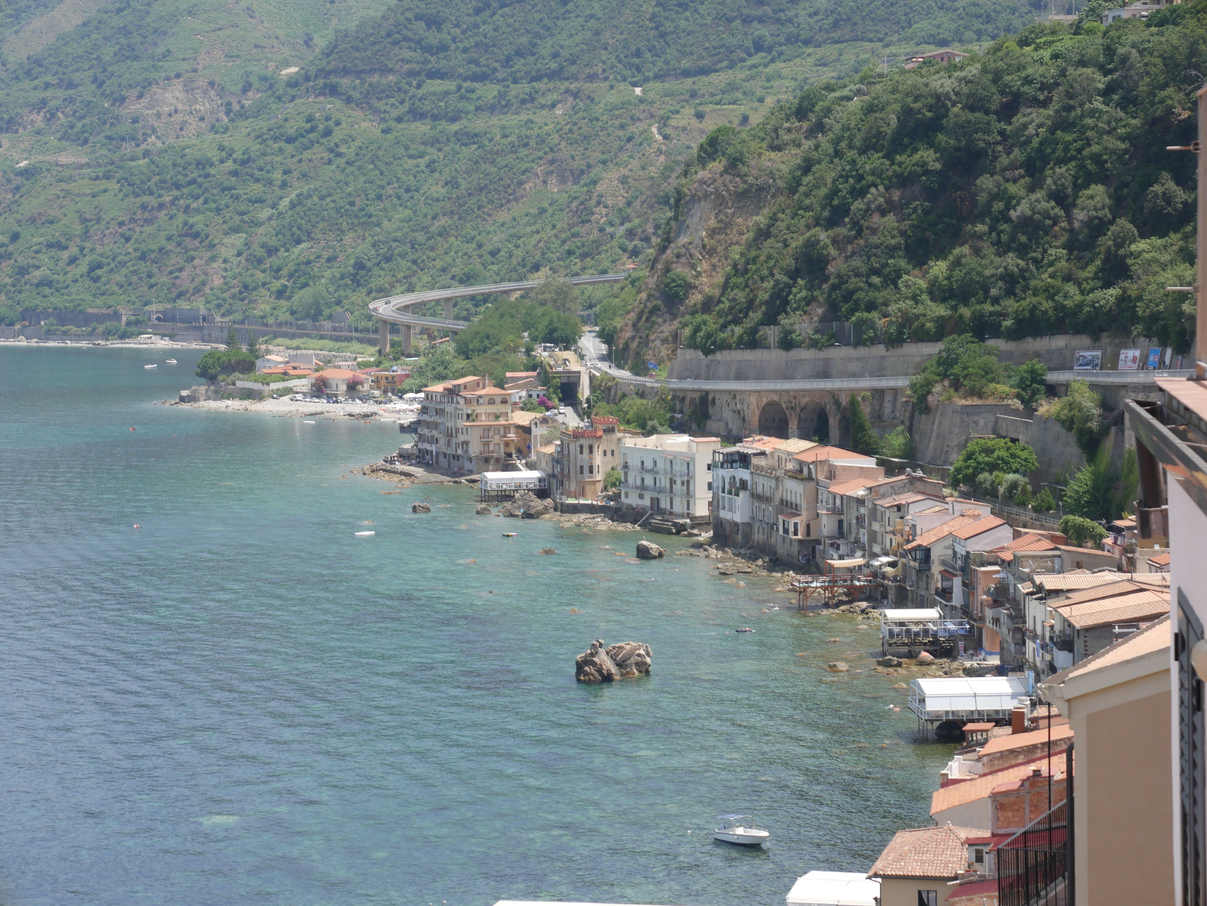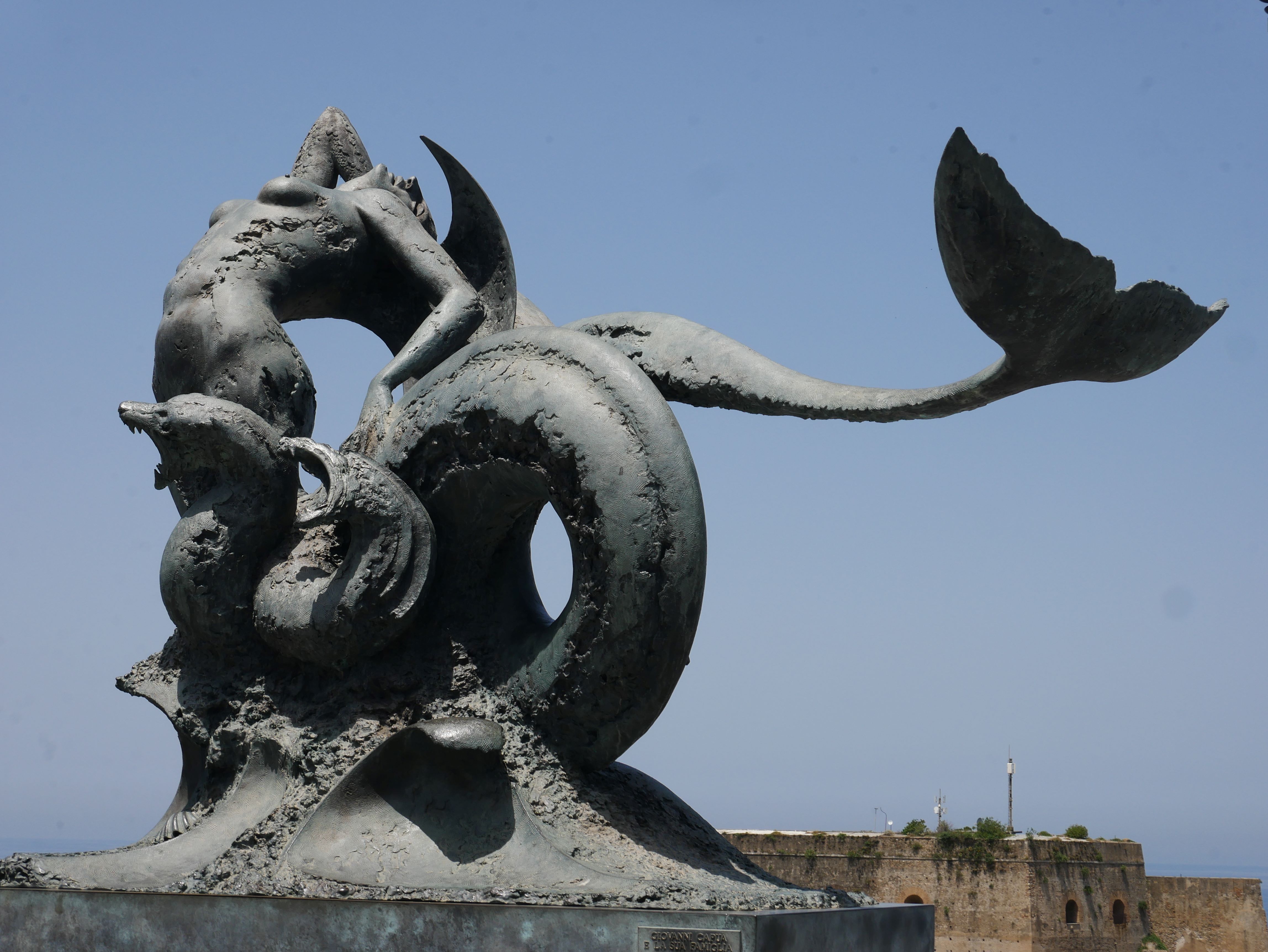 Pas le temps de s’appesantir car une fenêtre météo se présente pour traverser le détroit de Messine et nous filons donc à Scilla, pour deux petites nuits, juste le temps de faire des ricochets sur la plage, comme à l’accoutumée, flâner dans les rues escarpées, poser devant la statue de Scilla, jouer avec le soleil couchant, et s’émouvoir devant des espadons fraichement péchés (spécialité locale) et reposant tristement dans le coffre d’une voiture, avant de continuer vers les iles éoliennes.