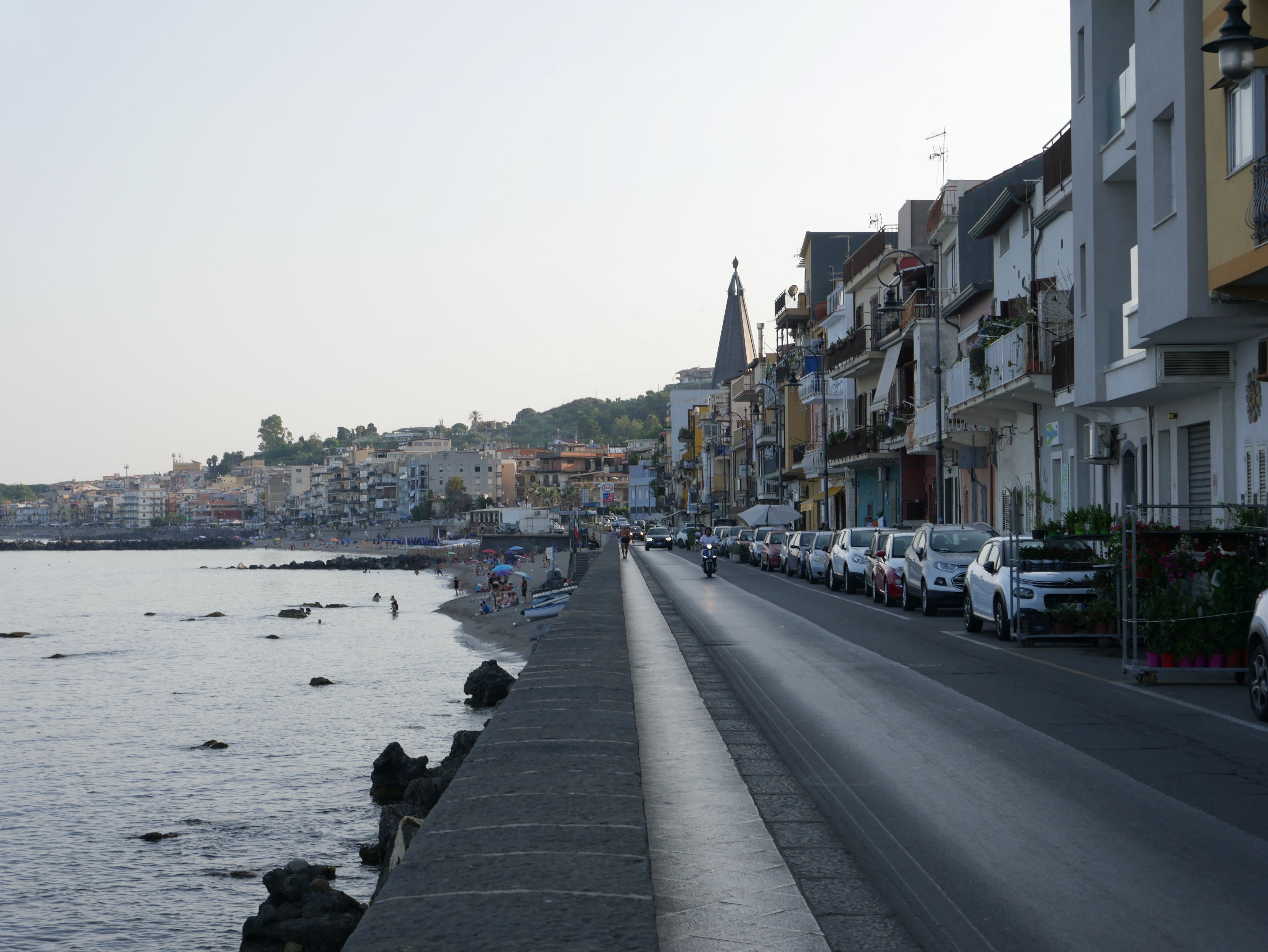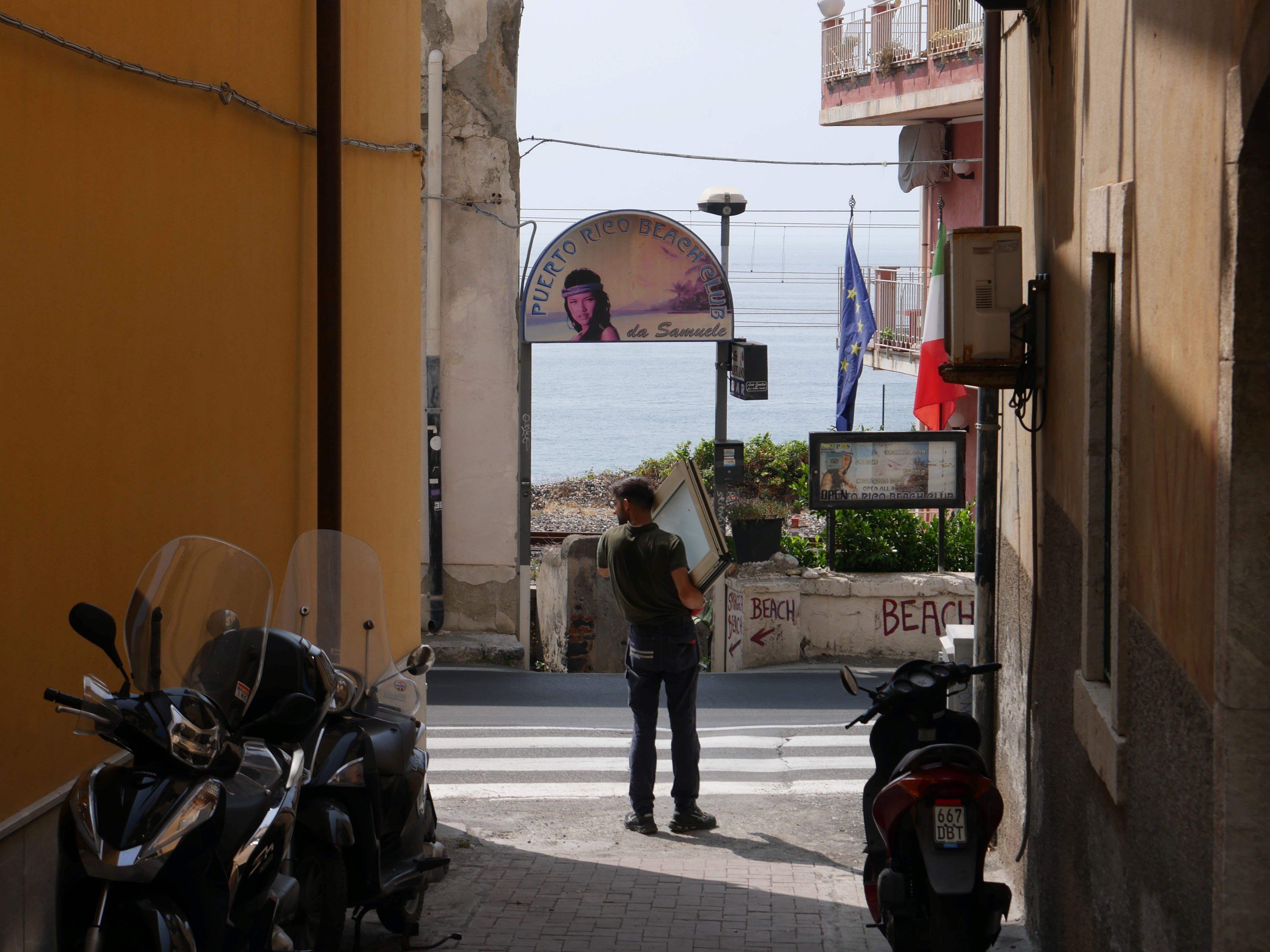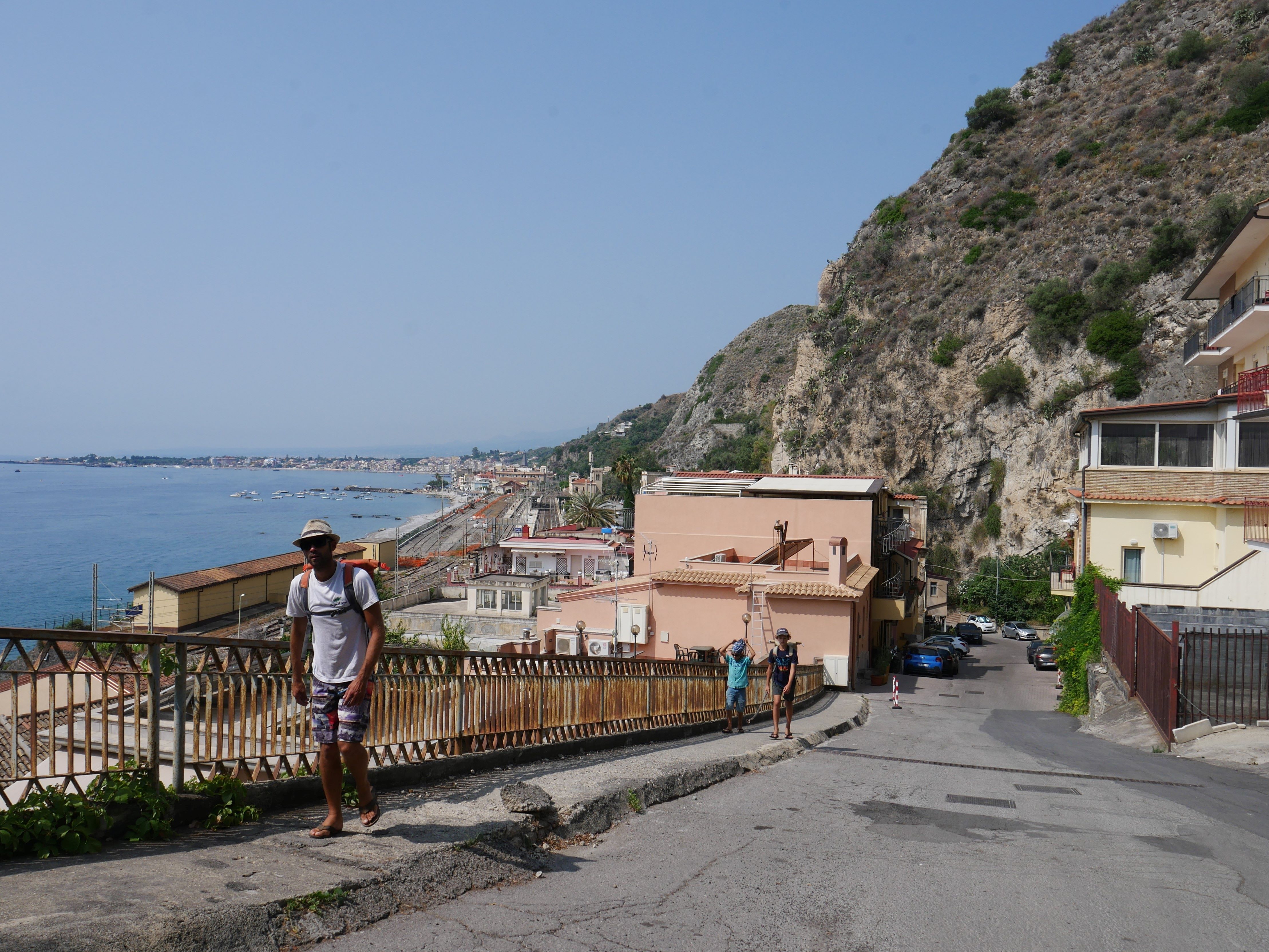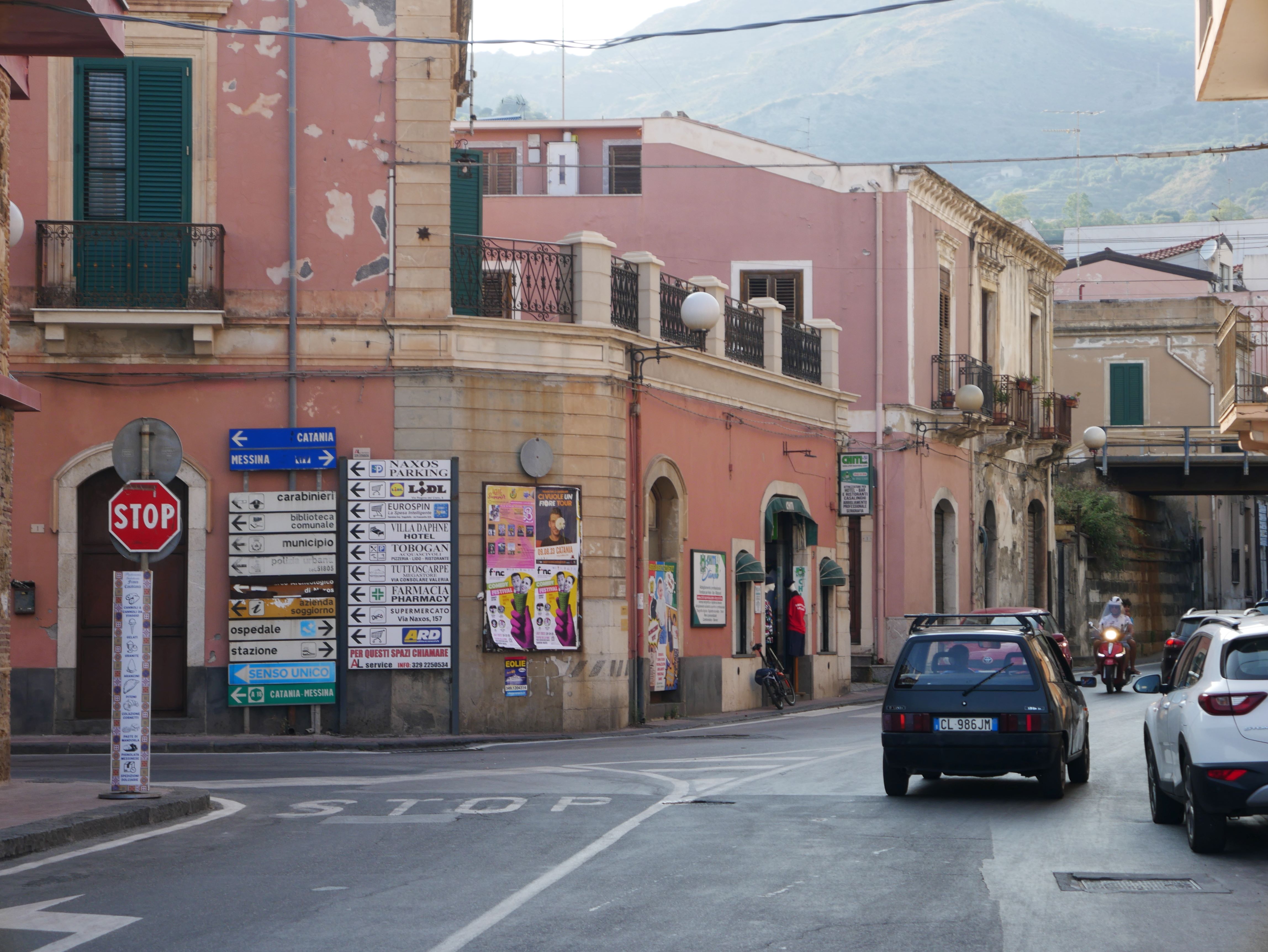 Même si le détour doit être bref, je tiens mordicus à passer par Taormina, d’abord parce qu’il serait criminel de ne pas fouler le sol Sicilien, mais aussi parce que le nom de cette ville, que je n’ai jamais visitée, me fait rêver depuis le visionnage du Grand Bleu. De Bova Marina, nous faisons donc cap plein Ouest.
