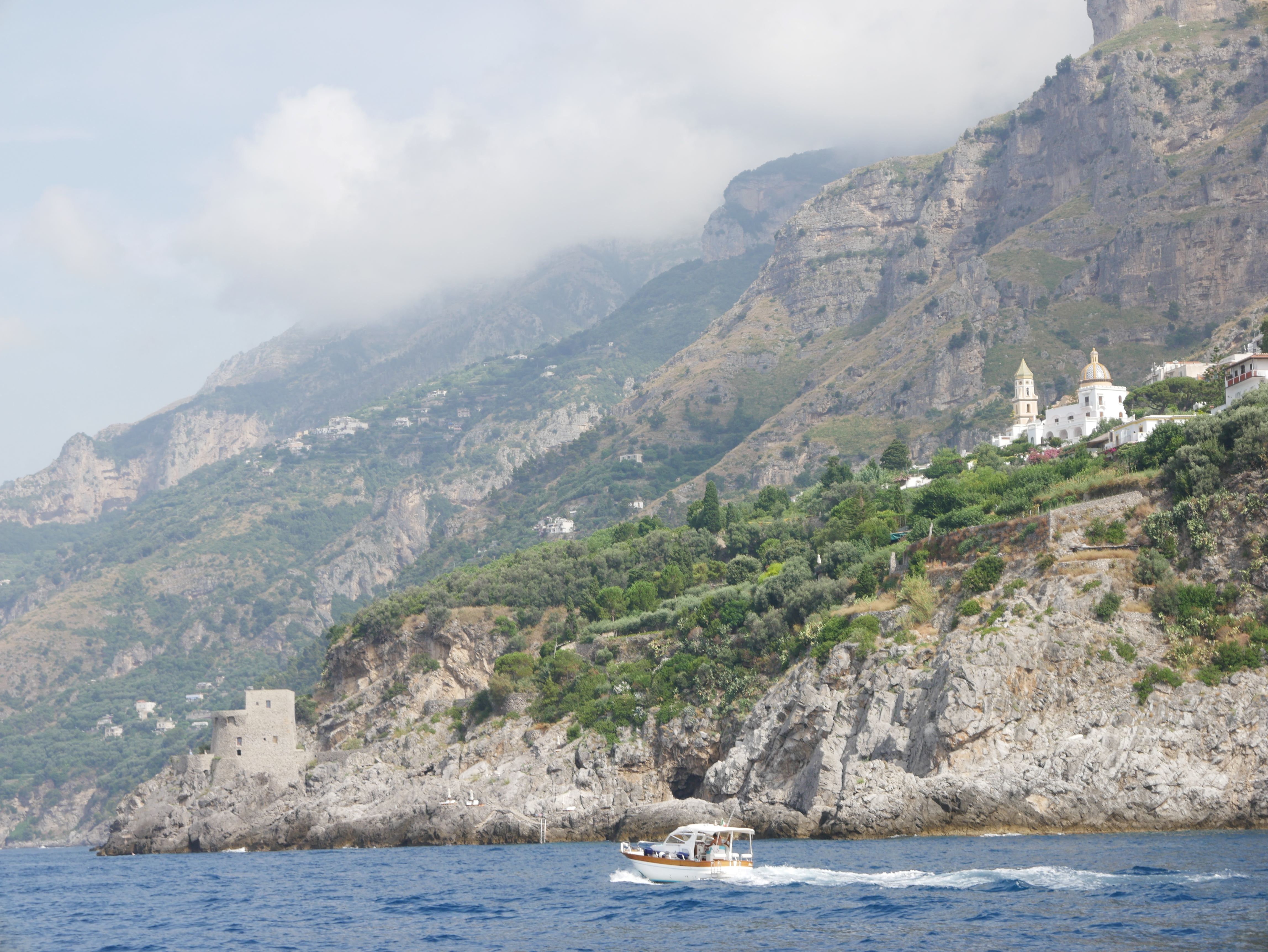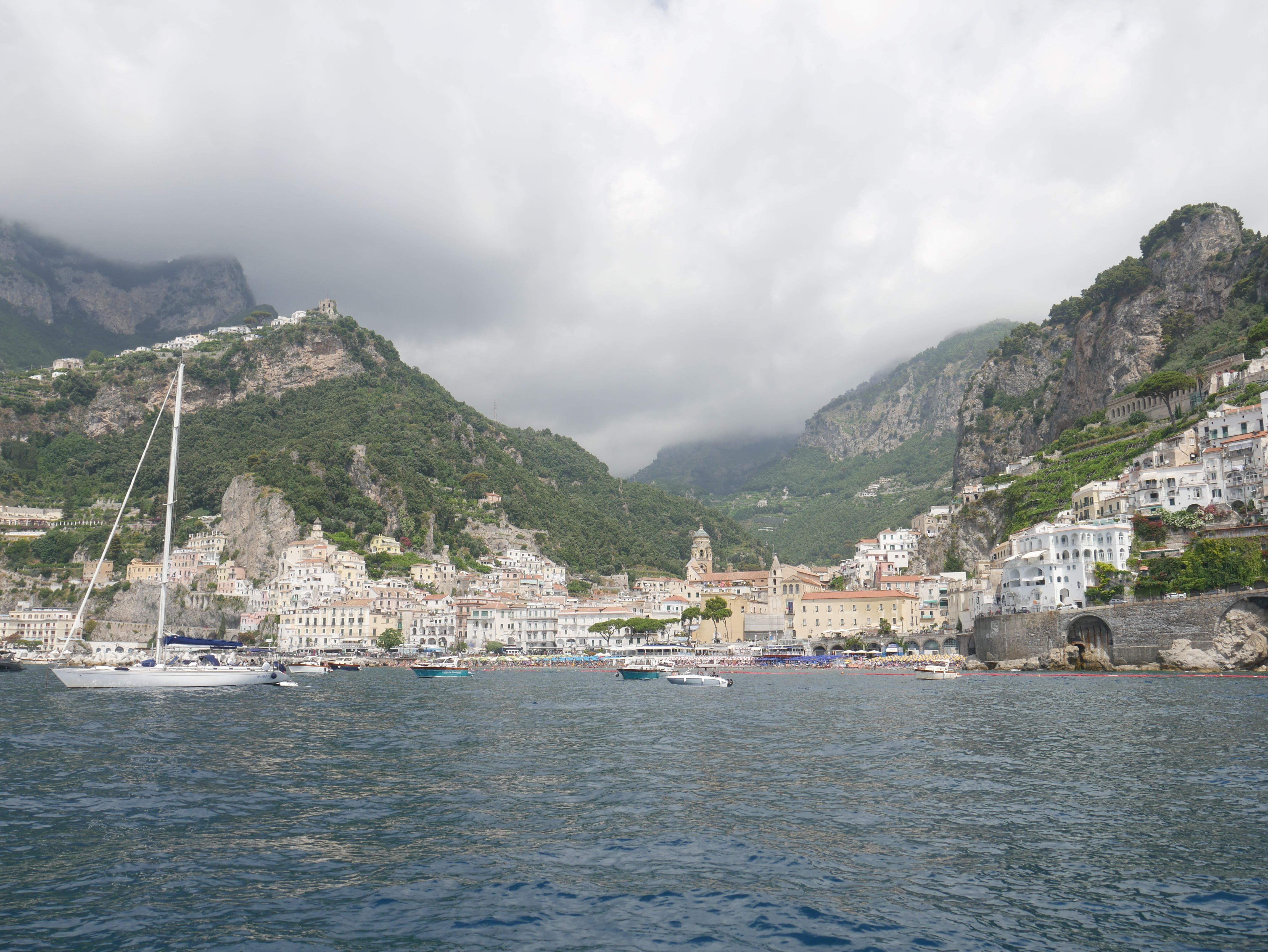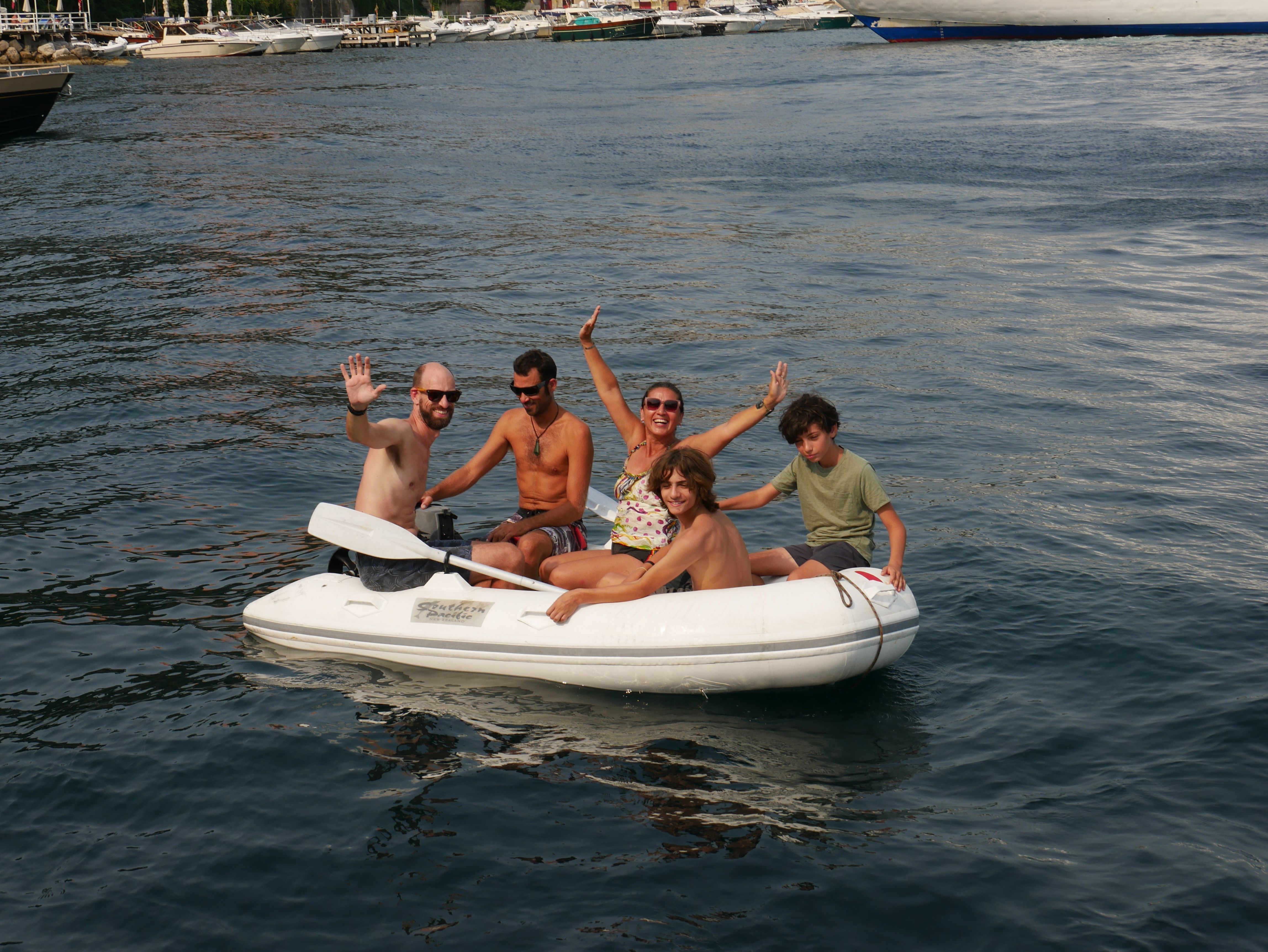 In a matter of minutes, after a loud pop, our dinghy was deflating with two kids aboard, ripped as it was after being violently impaled on the tip of the windvane and ruining our hopes to reach the shore dry. Even kayakers had to wait for the right timing to land on the ridiculously tiny, private (as we would later learn) beach where waves were crashing as if a storm was raging outside. And as a matter of fact, one could argue that tourists were taking Amalfi by storm… and we were feeling it, rolling from side to side uncontrollably on frentic Obelix.
