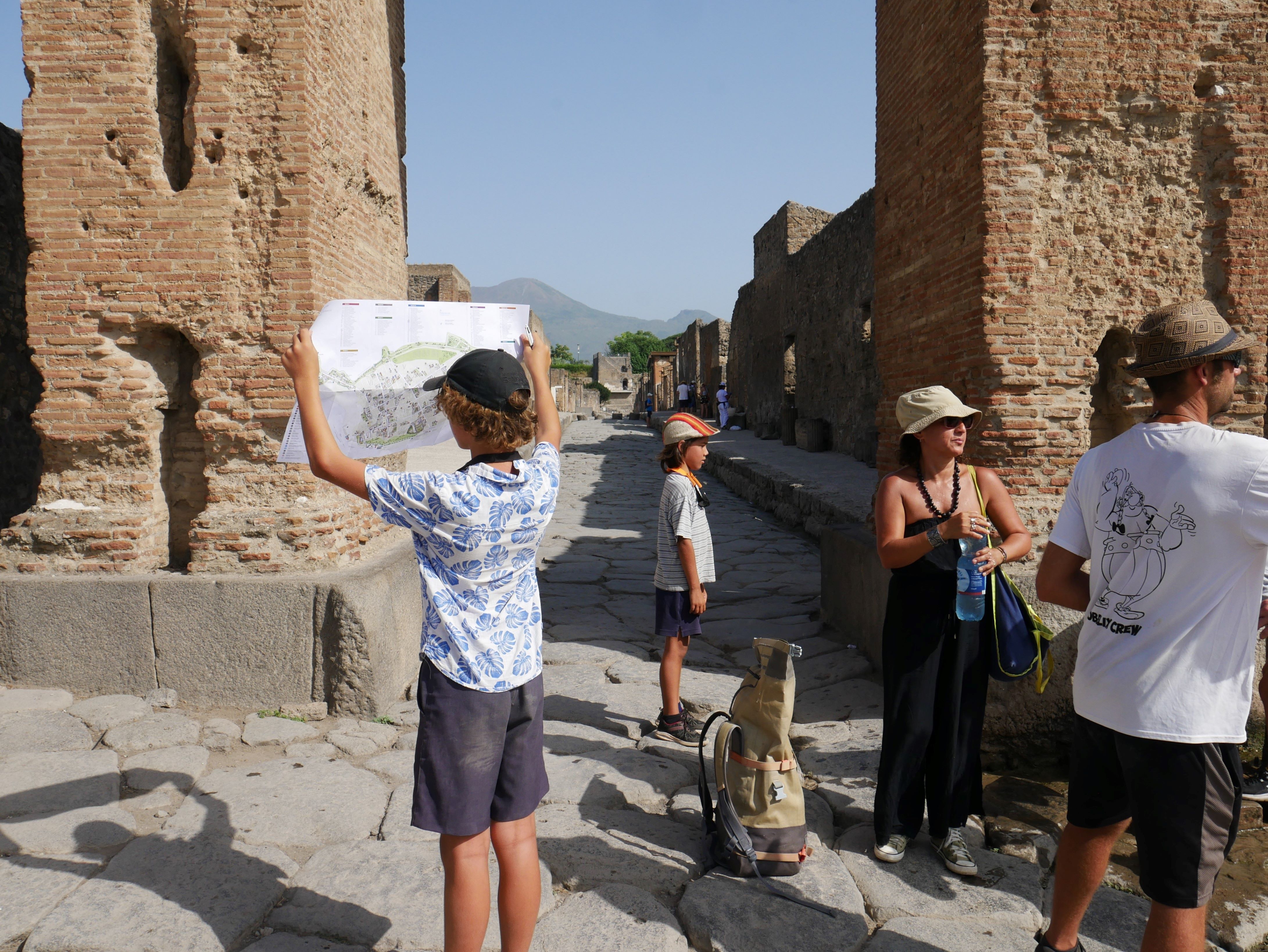 Sorrento was our strategic last stop to visit Pompeii, an hour-train ride away, and THAT was definitely the climax. I have not heard anyone speaking ill of Pompeii and I won’t either. Human beings love stories and Pompeii is full of them. You can’t help but be transported into another time, another way of life that seems so close to our own, and you’ll find yourself in the midst of it all, wondering what would have been your fate should you have lived there then. Buildings, sculptures, paintings, artefacts, are charged with emotion as last witnesses of the tragedy, and though we initially thought we’d be there for a few hours, despite the heat, the lack of shade, and the harshness or strangeness (thinking of plasters and representations of Priapus, the well-endowed god, seen for example at the entrance of Domus Vettiorum, a.k.a House of Vetti) of what we were confronted with, we stayed the entire day and could have gone back the next, weren’t it for other commitments or weather chasing us once more, away from the Napoli Bay that turned, in a morning, into a hostile wave pool we had to escape from, leaving Marcia, Camille, Arthur and Theo half a day to spare on their own. Who says sailing is freedom must still learn a thing or two about weather constraints…