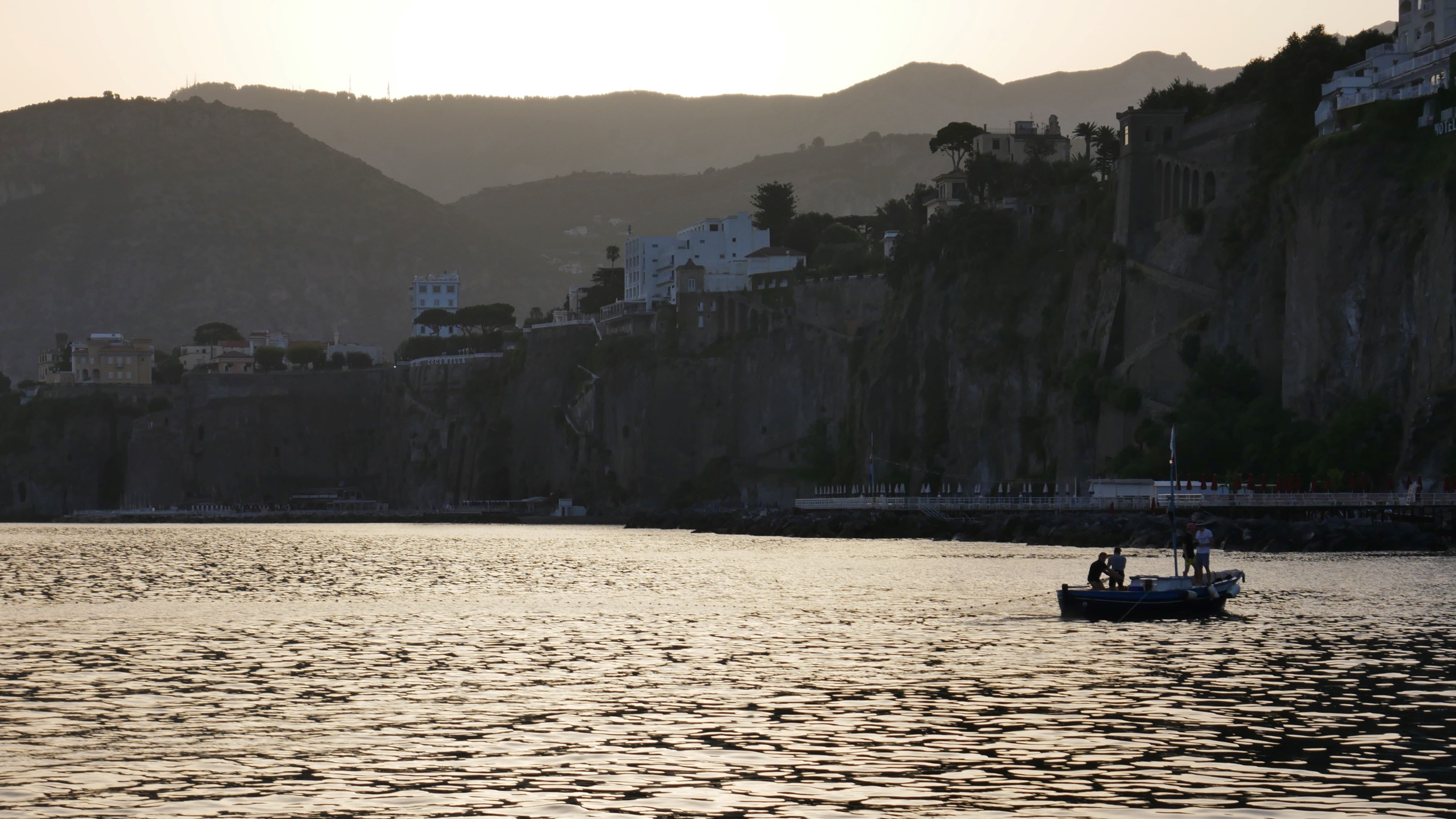 The stop I had been looking forward to at the Li Galli islets, where I imagined a secluded anchorage by the cliffs and outstanding snorkelling that would be the highlight of our trip, was a no-go, as motorboats and semi-rigids had taken over the place. Instead, we enjoyed the scenic landscape from the sea sailing the entire day from Amalfi to Sorrento, hailing Capri from afar, under a steady wind strengthening towards the end of the afternoon and pushing Obelix to decent speed, thus offering delightful sensations and rekindling us with the joy of sailing, as will certainly attest captains Arthur and Camille who took the helm a few times.