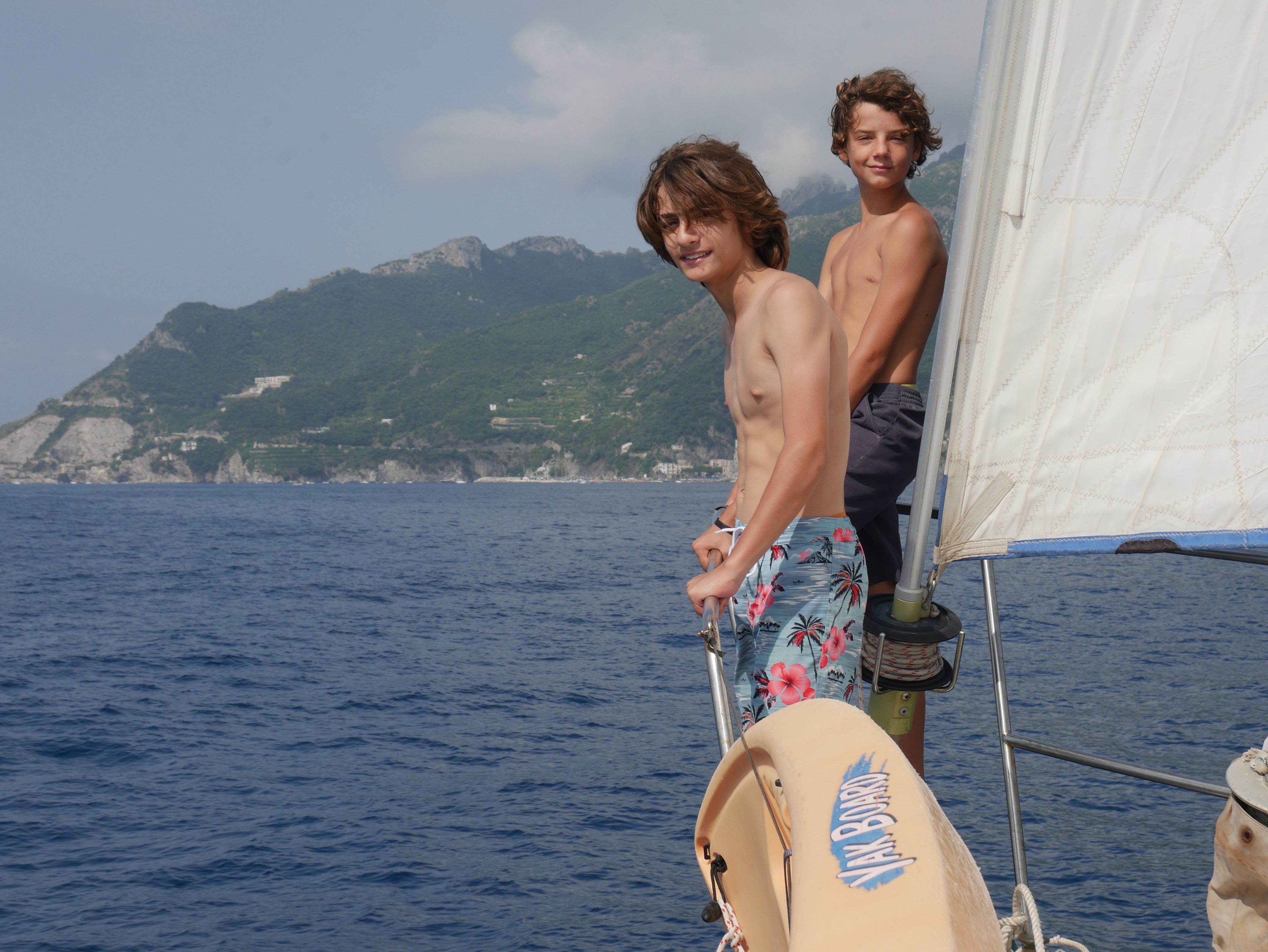 Marcia, Camille and their two children Arthur and Theo, our neighbours from Saint Heliers, New Zealand, and friends before becoming neighbours, who were on a post-COVID round-the-world trip to reconnect with family in Brazil and France, had met us in Salerno for a cruise along the Amalfi coast. Based on rave reviews from friends who had clearly never been to the area in high season, we had inadvertently oversold the glamorous escape to them. Add to that the oppressive heat that hit the place and you obtained a cocktail of unfortunate circumstances compromising an enjoyable cruise on Obelix. Yet, I dare say we made the most of it and easy going as they are, we were glad to share a slice of our adventurous lifestyle with them, and furthermore, I’m told, instilling in their offspring dreams of open seas and ocean voyages.