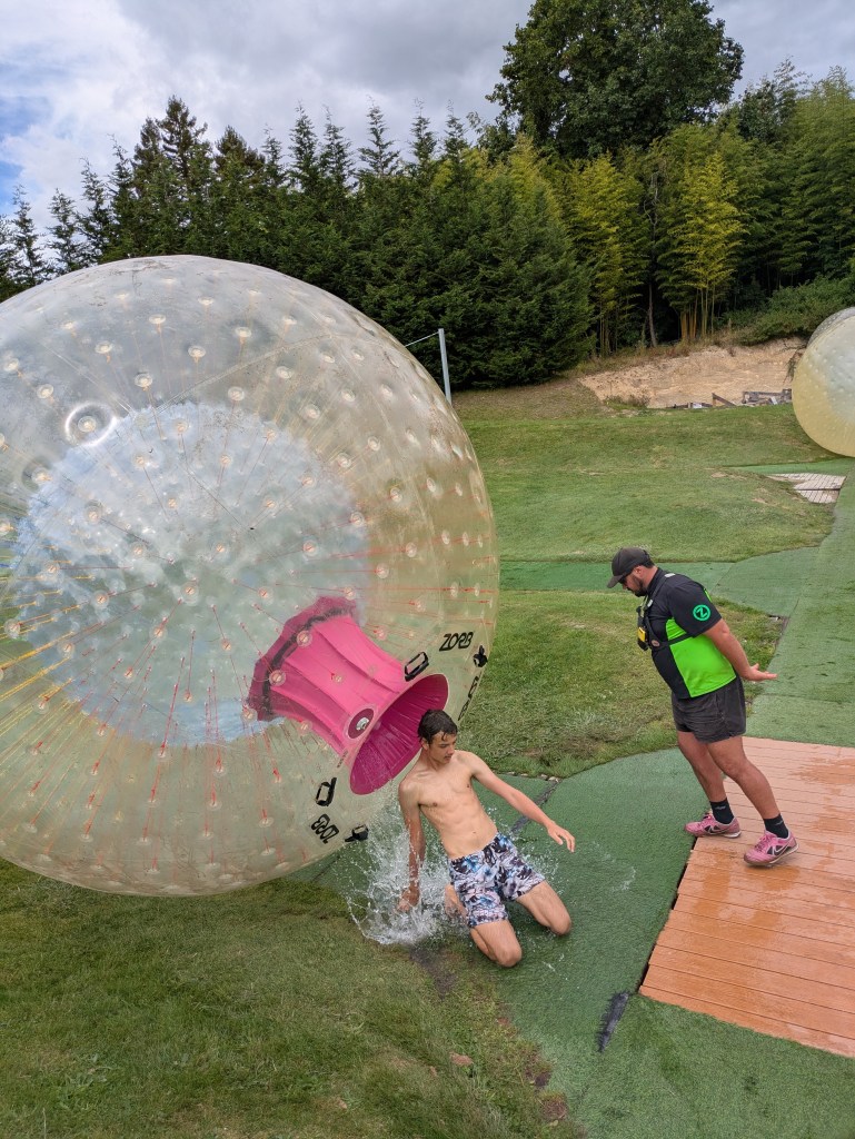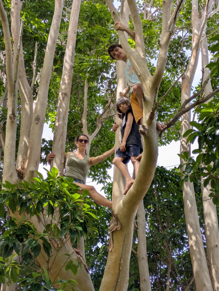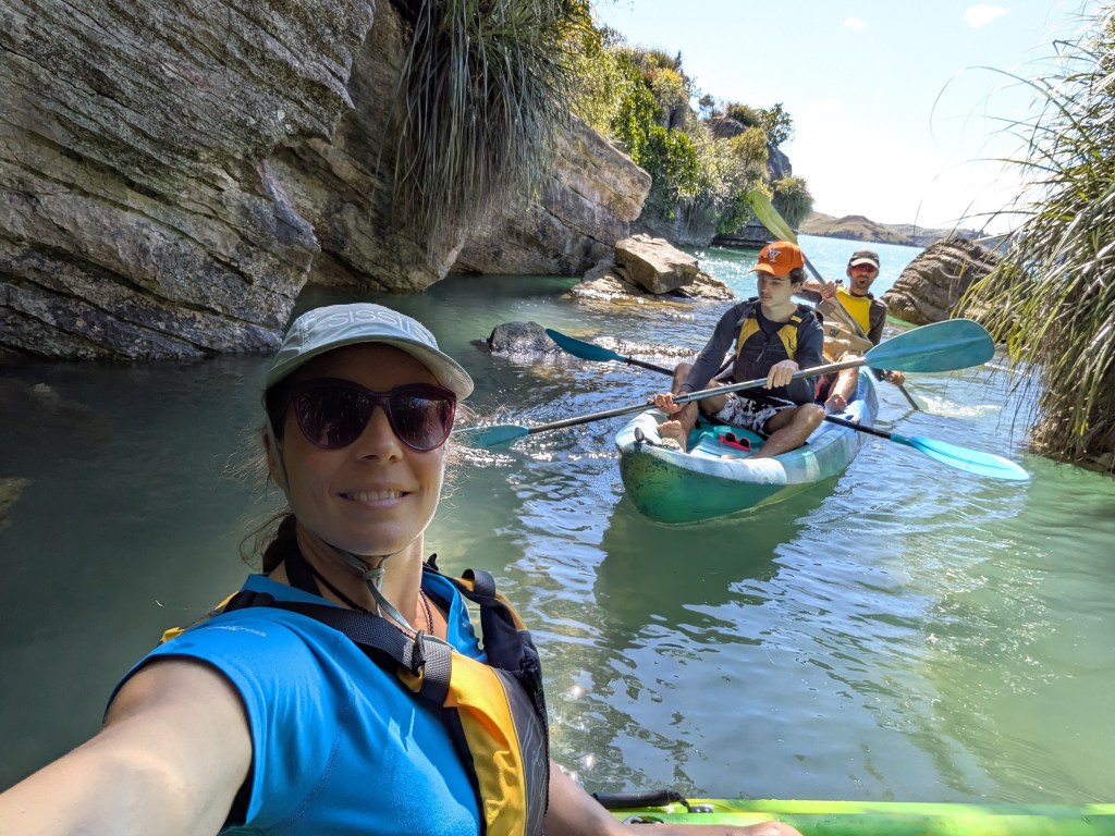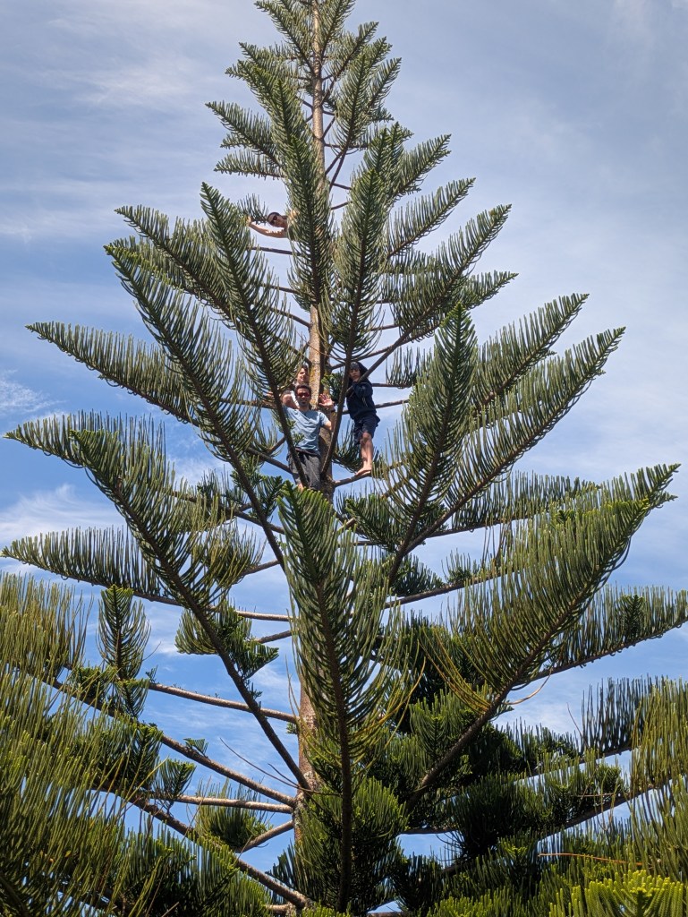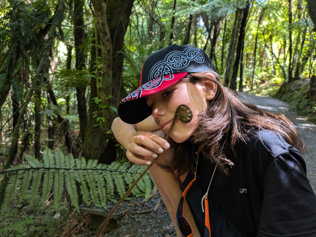 Blessed with the best-of-summer-tail weather, outdoor activities included climbing trees of all kinds (including a truly witchy Pohutukawa tree with a trunk spiralling up like a staircase), whizzing down Northhead grassy slopes on ripped-apart cardboard boxes sleds, surfing at Raglan’s Ocean beach, kayaking to pancakes rocks, playing with eels at the bottom of Bridal Veil falls, jumping off Raglan’s bridge, hiking Mount Karioi, as well as the Tama Lakes in Tongariro National Park, and Zorbing in Rotorua (the iconic kiwi touristic activity we hadn’t managed to do in fifteen years living in the country).