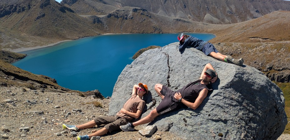 Blessed with the best-of-summer-tail weather, outdoor activities included climbing trees of all kinds (including a truly witchy Pohutukawa tree with a trunk spiralling up like a staircase), whizzing down Northhead grassy slopes on ripped-apart cardboard boxes sleds, surfing at Raglan’s Ocean beach, kayaking to pancakes rocks, playing with eels at the bottom of Bridal Veil falls, jumping off Raglan’s bridge, hiking Mount Karioi, as well as the Tama Lakes in Tongariro National Park, and Zorbing in Rotorua (the iconic kiwi touristic activity we hadn’t managed to do in fifteen years living in the country).